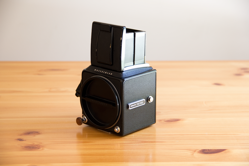 - 1986 Hasselblad 500C/M Body w/ Caps, Late Style Winder and WLF (Black)