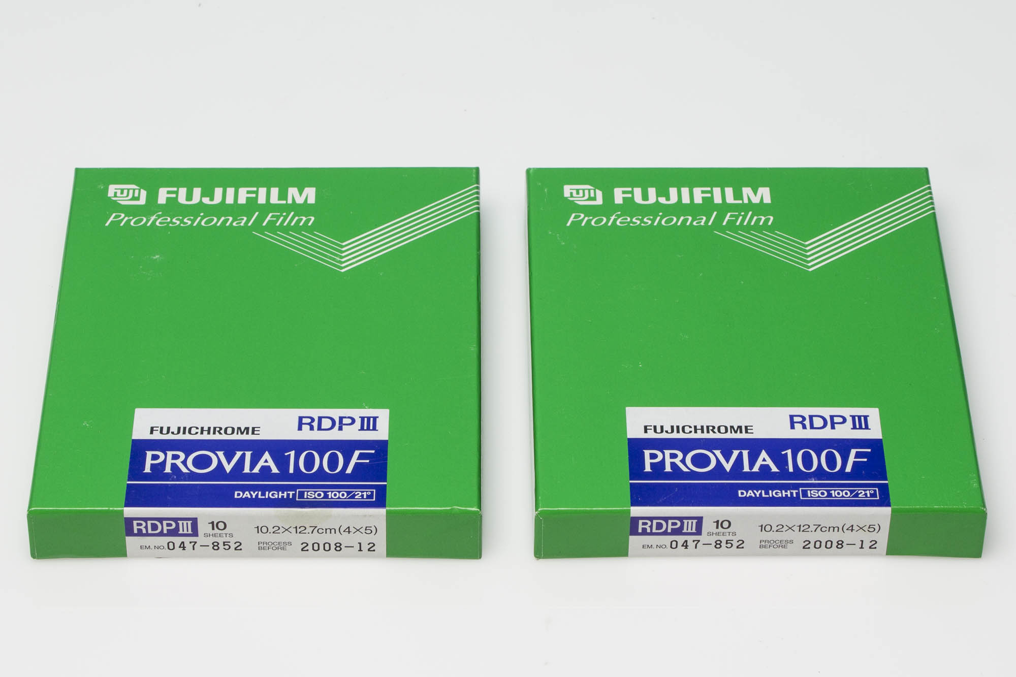 for sale are 2 boxes (each with ten sheets) of Fujichrome RDP III (Provia 100F), 4x5", expired 12/2008.