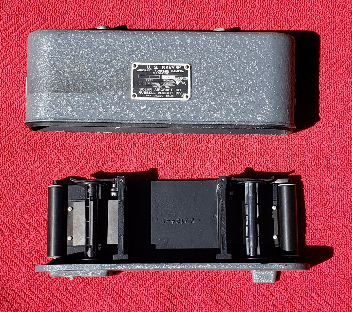 A vintage WWII U.S. Navy Torpedo Bomber Camera Film Back.