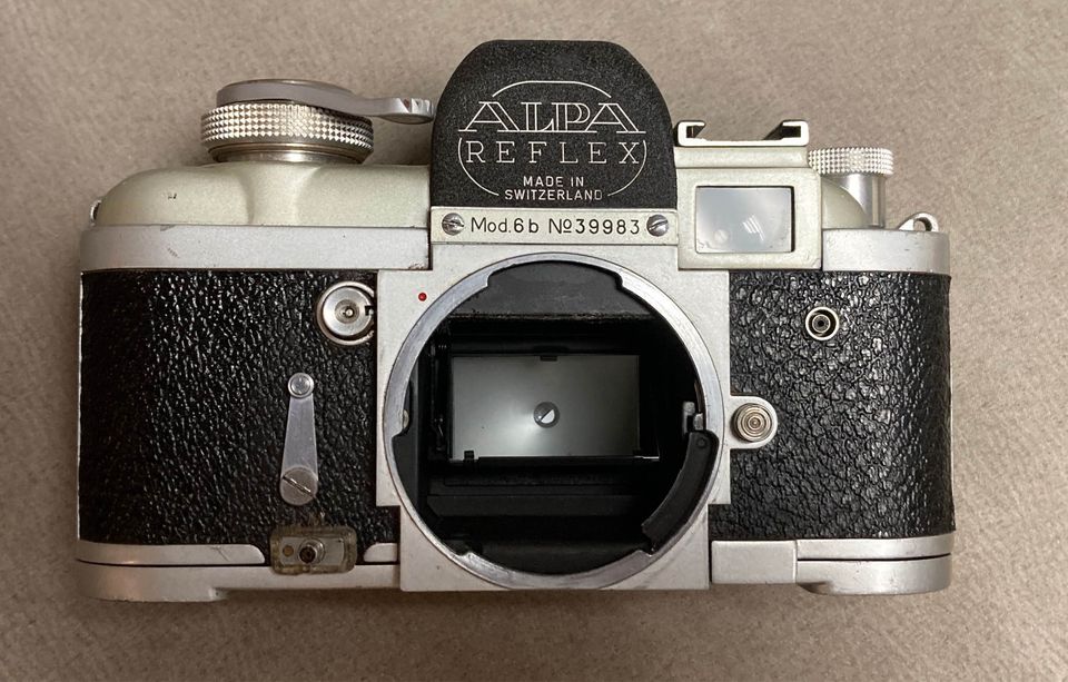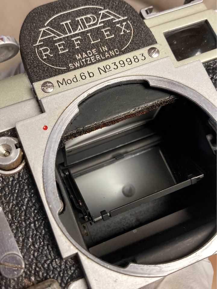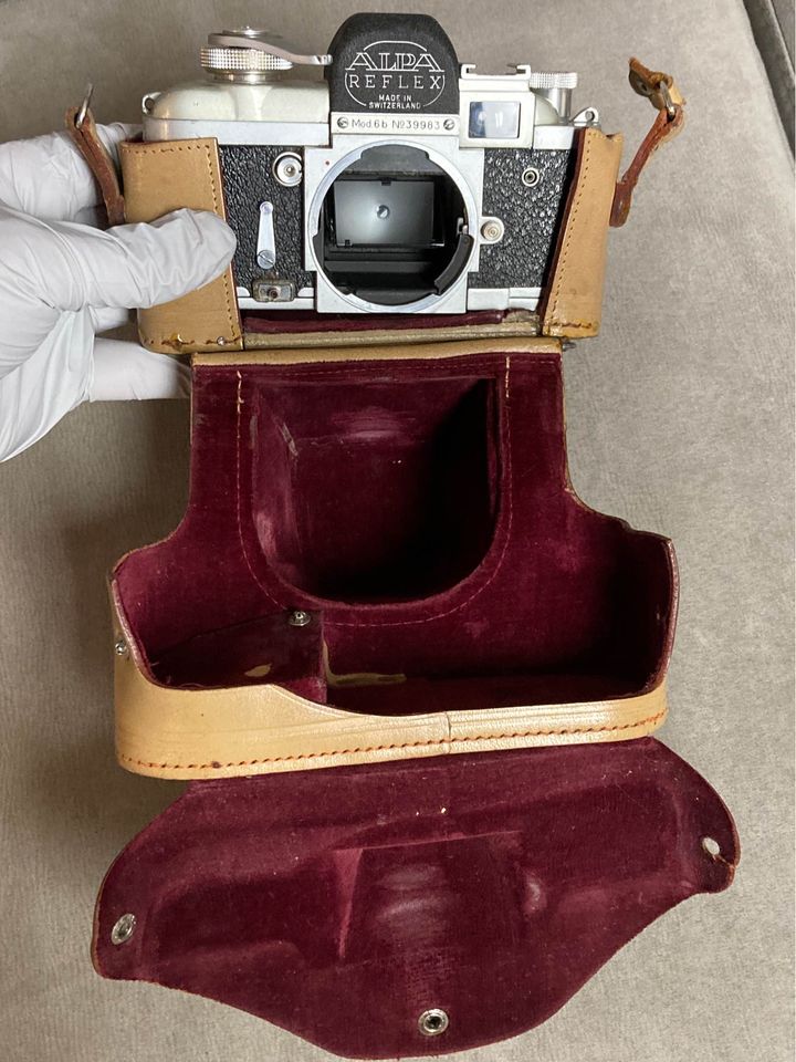 For Sale Alpa 6B Camera Body. Shutter works great. Mirror, curtain, self timer all good. Viewfinder - peep hole is cloudy. Main prism window clean and clear although there is a bug? or something you can see when looking through prism. So a good working body that needs a little TLC. Includes original case with broken strap. Social security number inscribed on bottom plate. $265 plus shipping. I ship worldwide to PayPal addresses