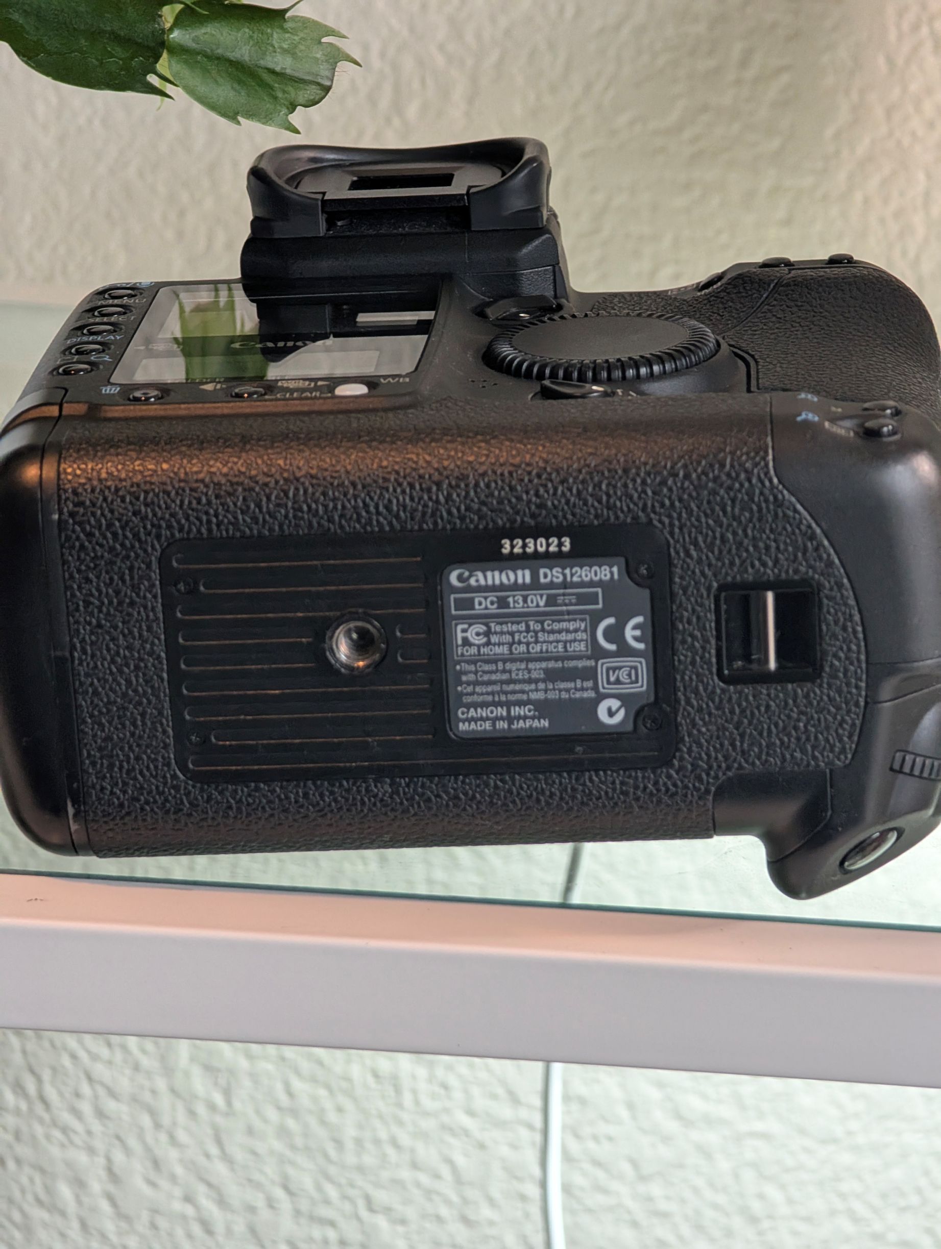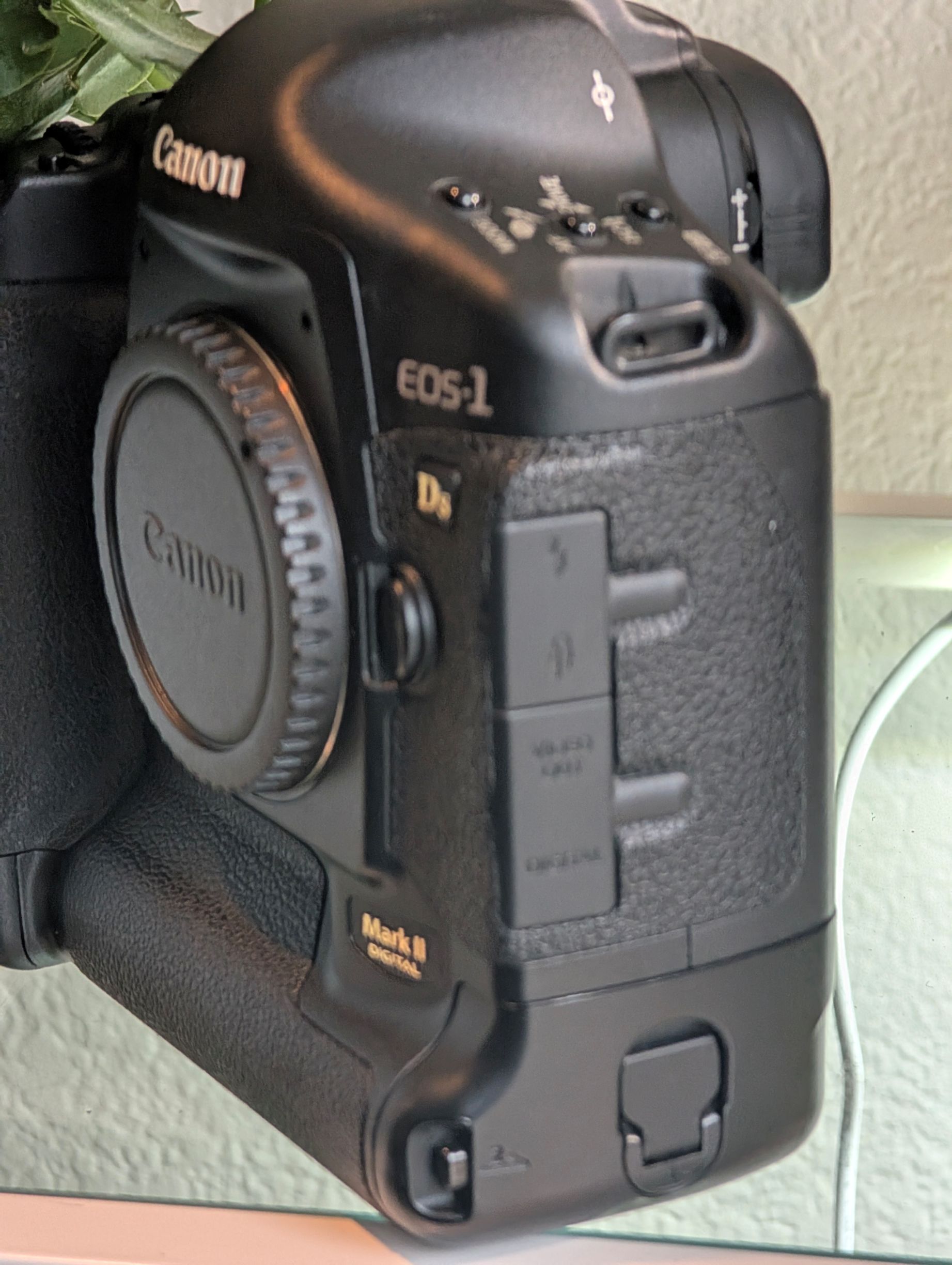 Canon 1Ds in really nice shape. Cosmetically it looks near new, except as I took photos of it I noticed a screw missing on the front above the lens mount. I'll try to have that replaced before it goes out.