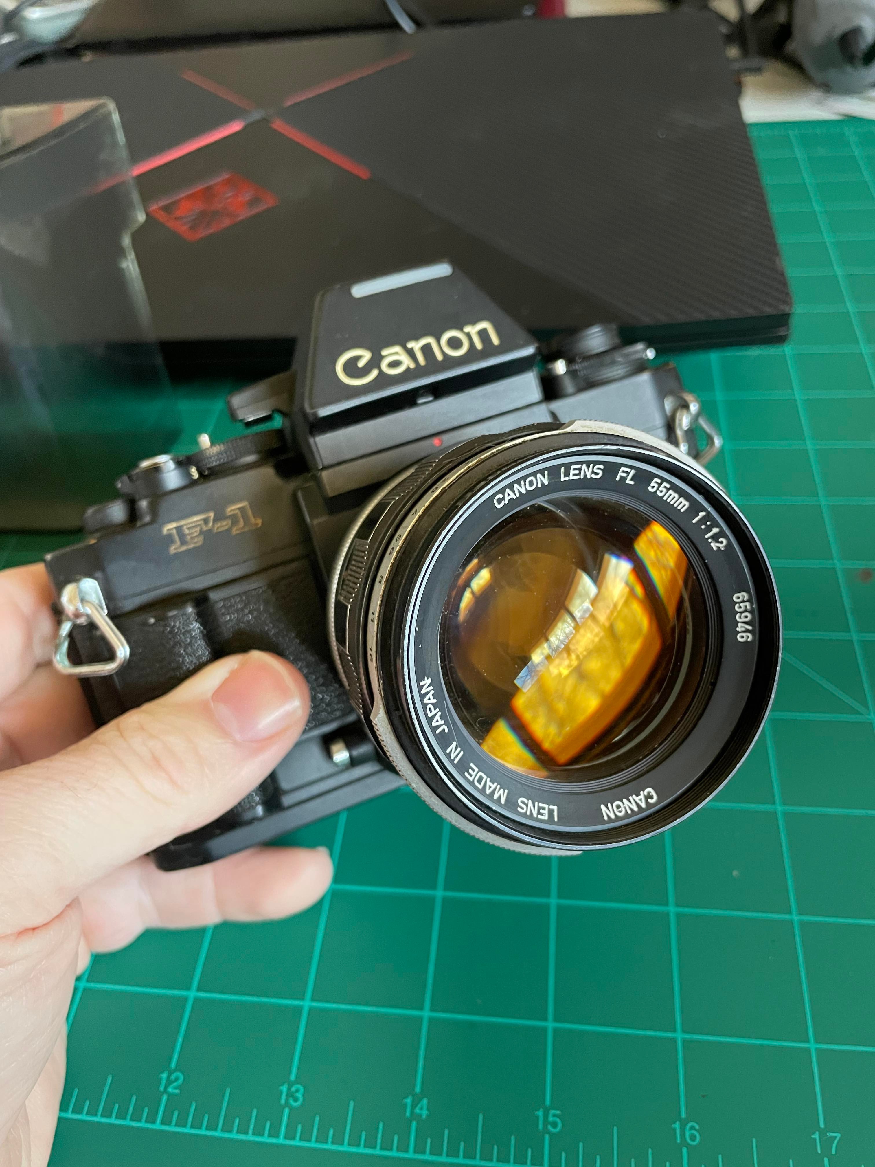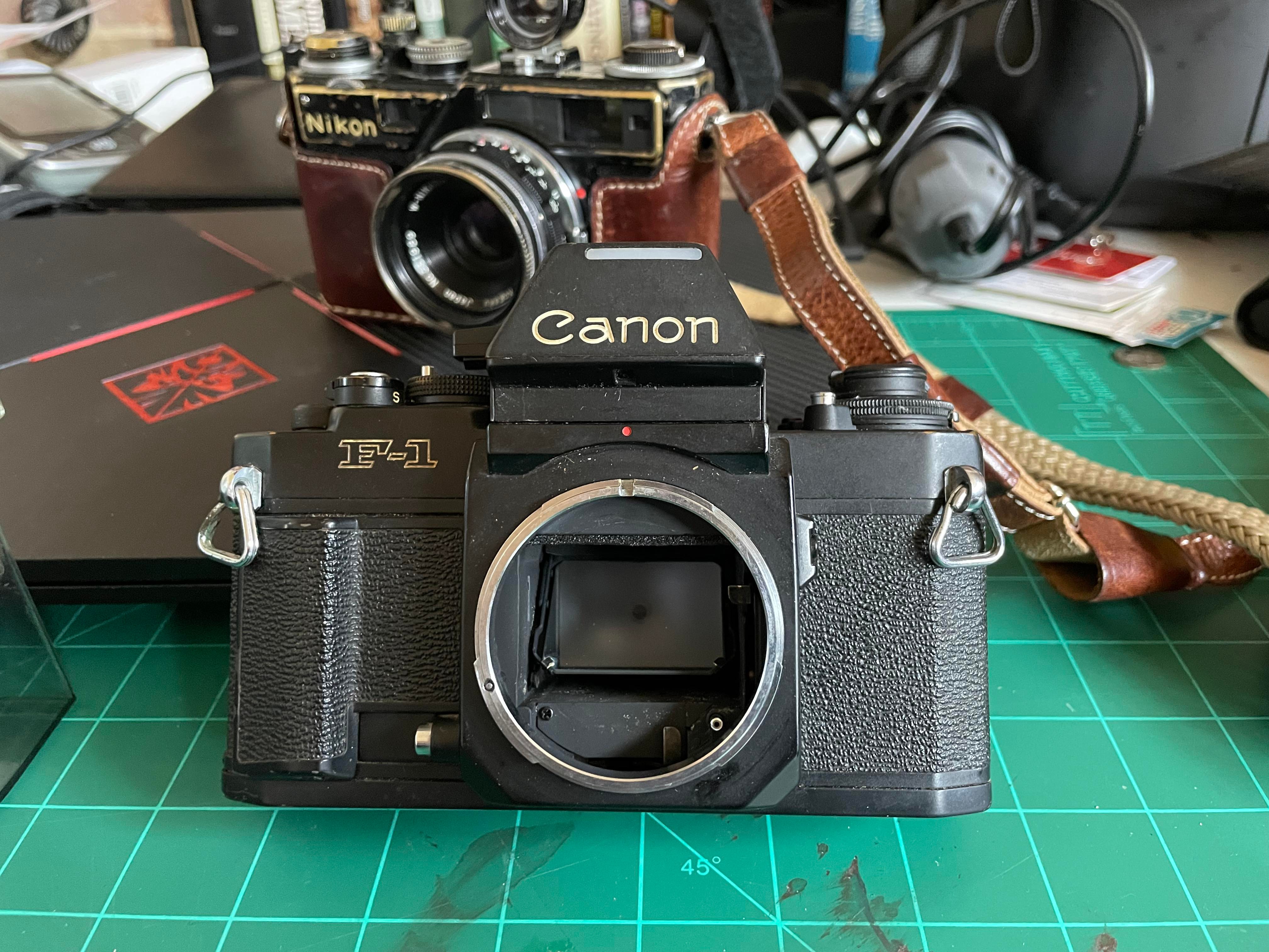 Starting to make some room in the darkroom and clear some items off of the shelf. This Canon F1 New seems to be a pretty good daily shooter. I'm actually running a roll through it now to test it. I don't know much about it, but picked it up long ago and simply put on the shelf to display it.