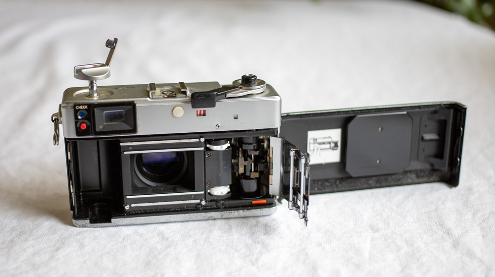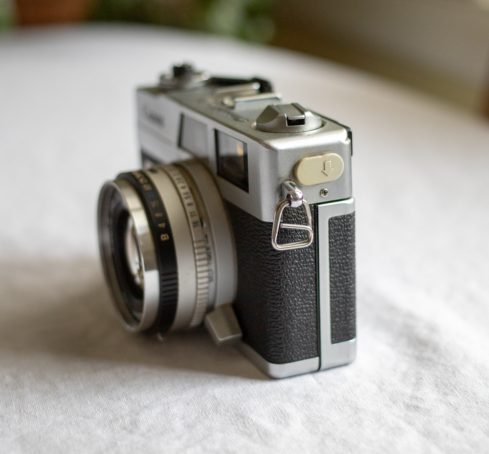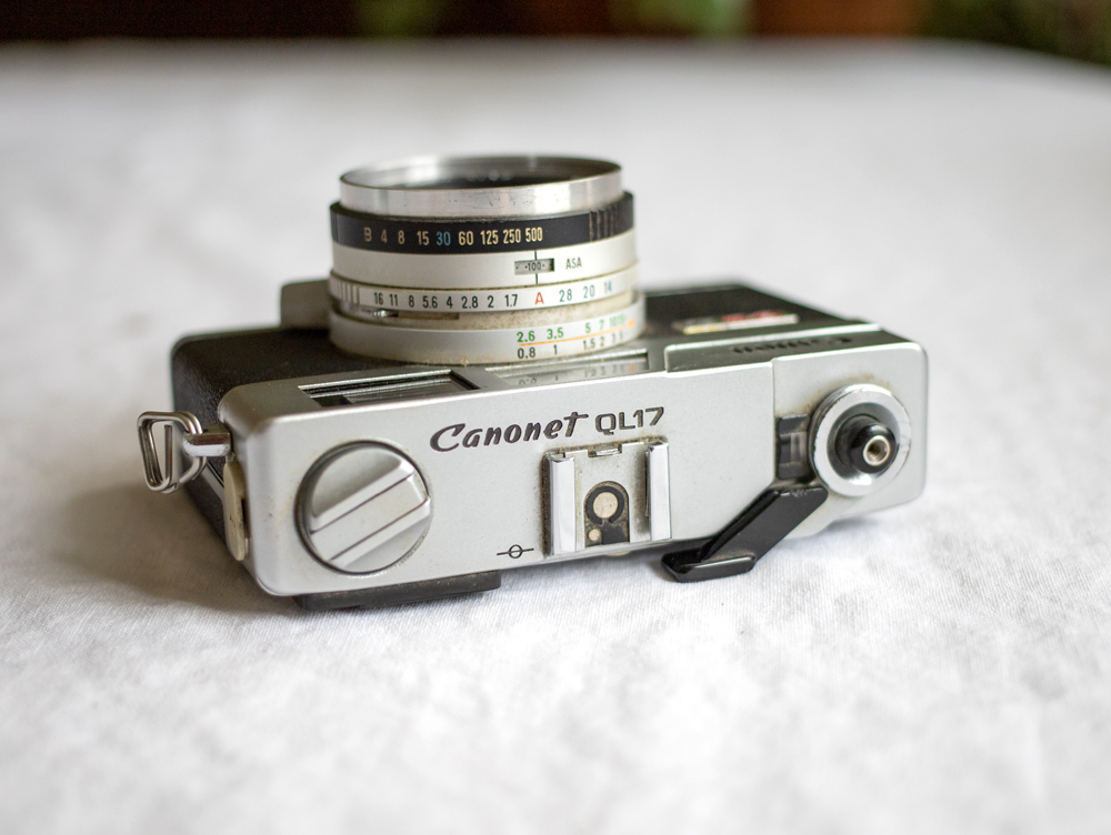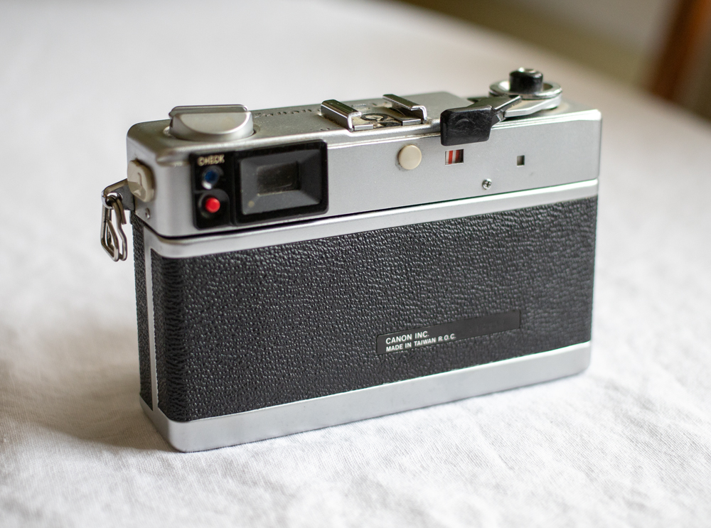 Too many Canonets, so this one goes. Cosmetically, it’s in good shape. Chrome looks good with no dings or dents, but a strap lug is missing (see pics). The meter doesn’t work (meter needle stuck at about F4), but the battery check diode will light up when the button is pressed. The light seals are probably in need of changing. On the plus side, the viewfinder is bright and clear and the rangefinder is clearly defined. Shutter speeds all work and sound accurate to my ear. The lens is clear with no fungus. If you use the Sunny 16 rule, or an accessory meter, you’re all set. I used this camera for B&W infrared photography years back. Always worked well.