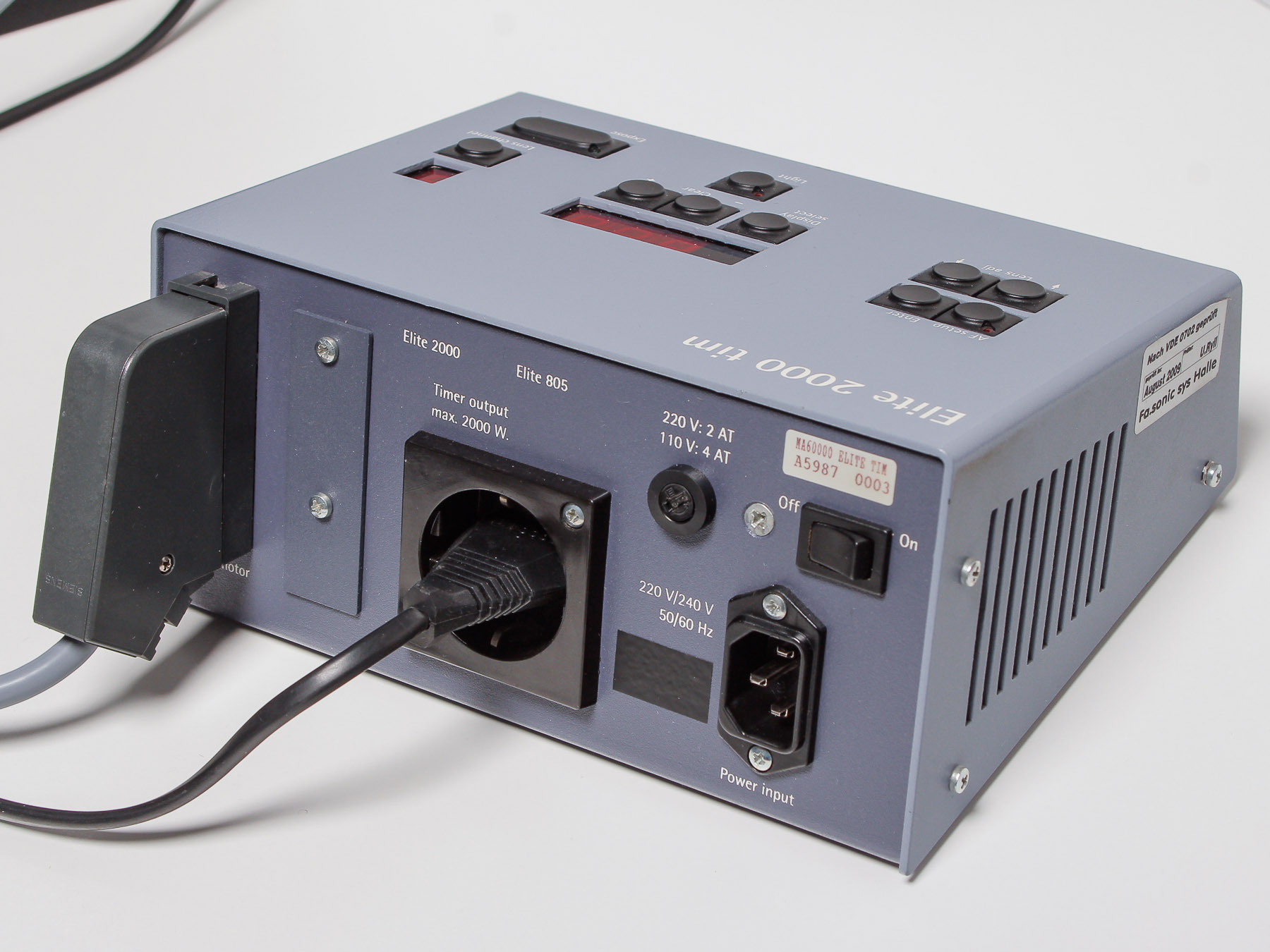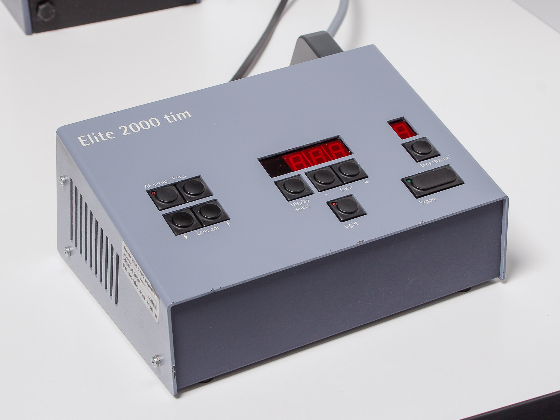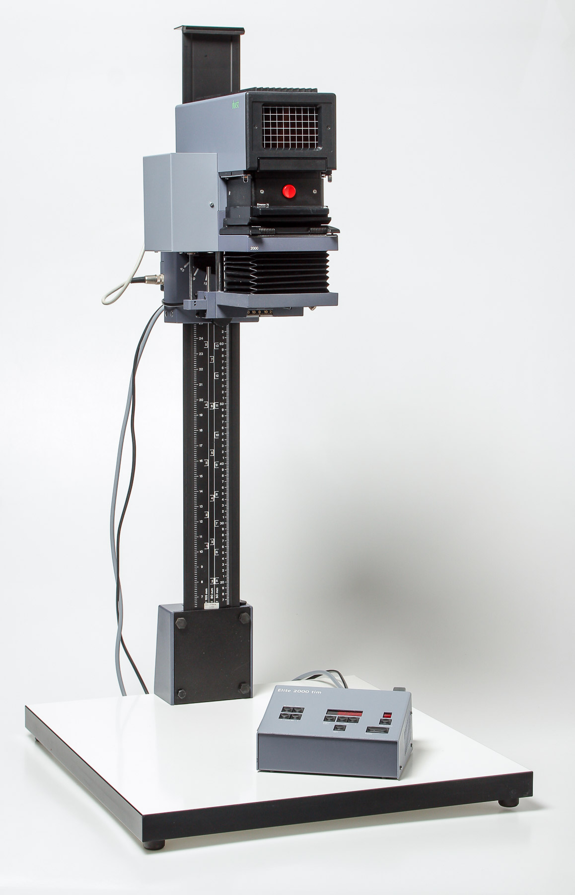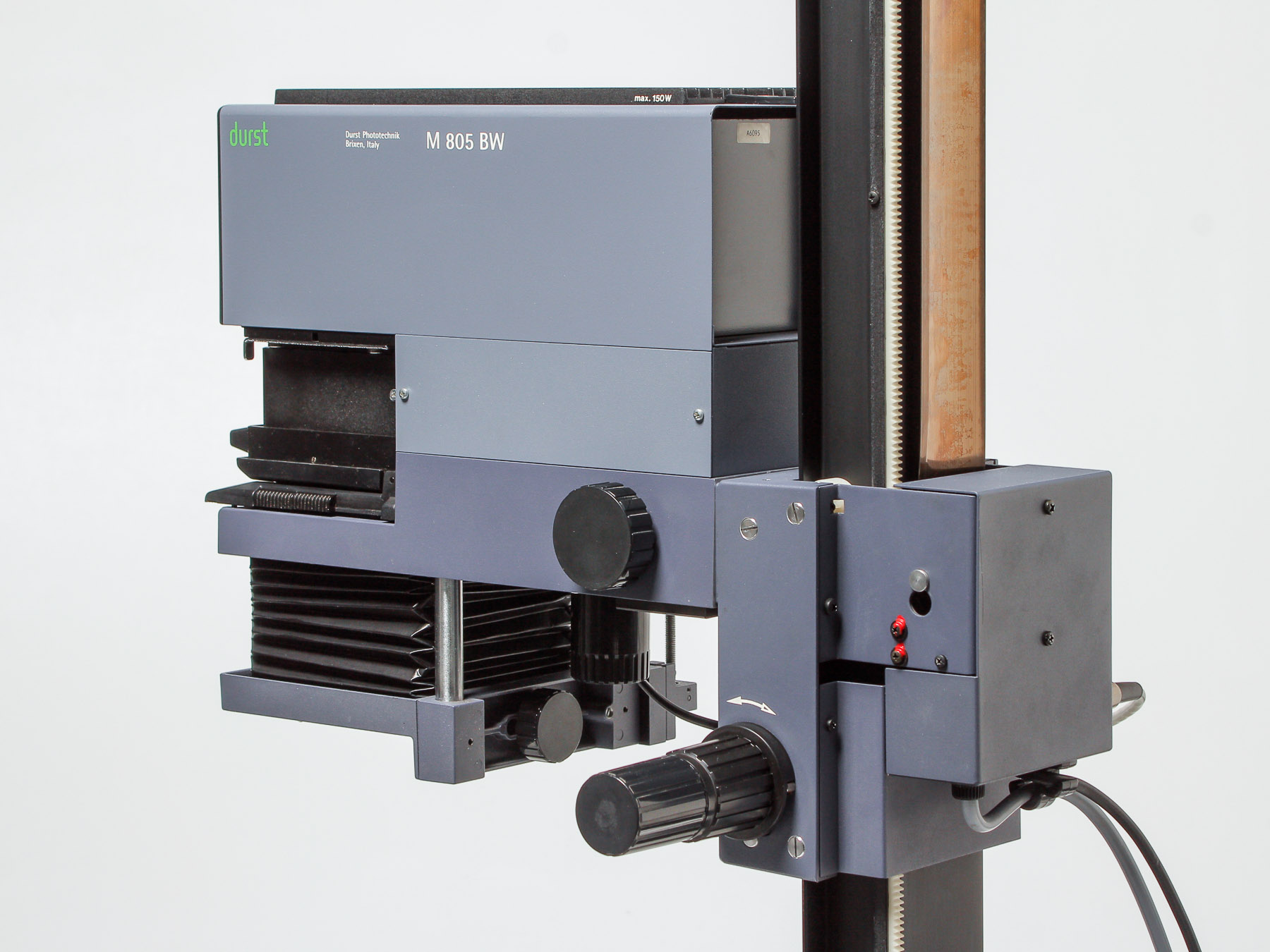 this is a Durst M805 with motrized Autofocus. It uses the same "Elite 2000 tim" Controller like the Laborator 1200. You can program and calibrate up to nine different lenses. The electronics and the mechanics are working flawlessly. Also you can do manual focusing via the correlating tabs.