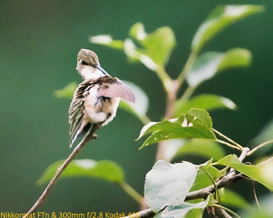 Camera is in excellent condition and has been film tested. Meter and shutter are working well and viewfinder is clean. The lens is clean and has been Ai'd so you can use it on all newer bodies with aperture index tab. It works great on my D700 & D7200 as well. The focusing ring is work fine and its smooth but with varying resistance from minimum to infinity. There's also a 4mm play where there's no resistance ( see pic). Hummingbird pic with this camera & Nikon 300mm f/2.8 on Kodak 400