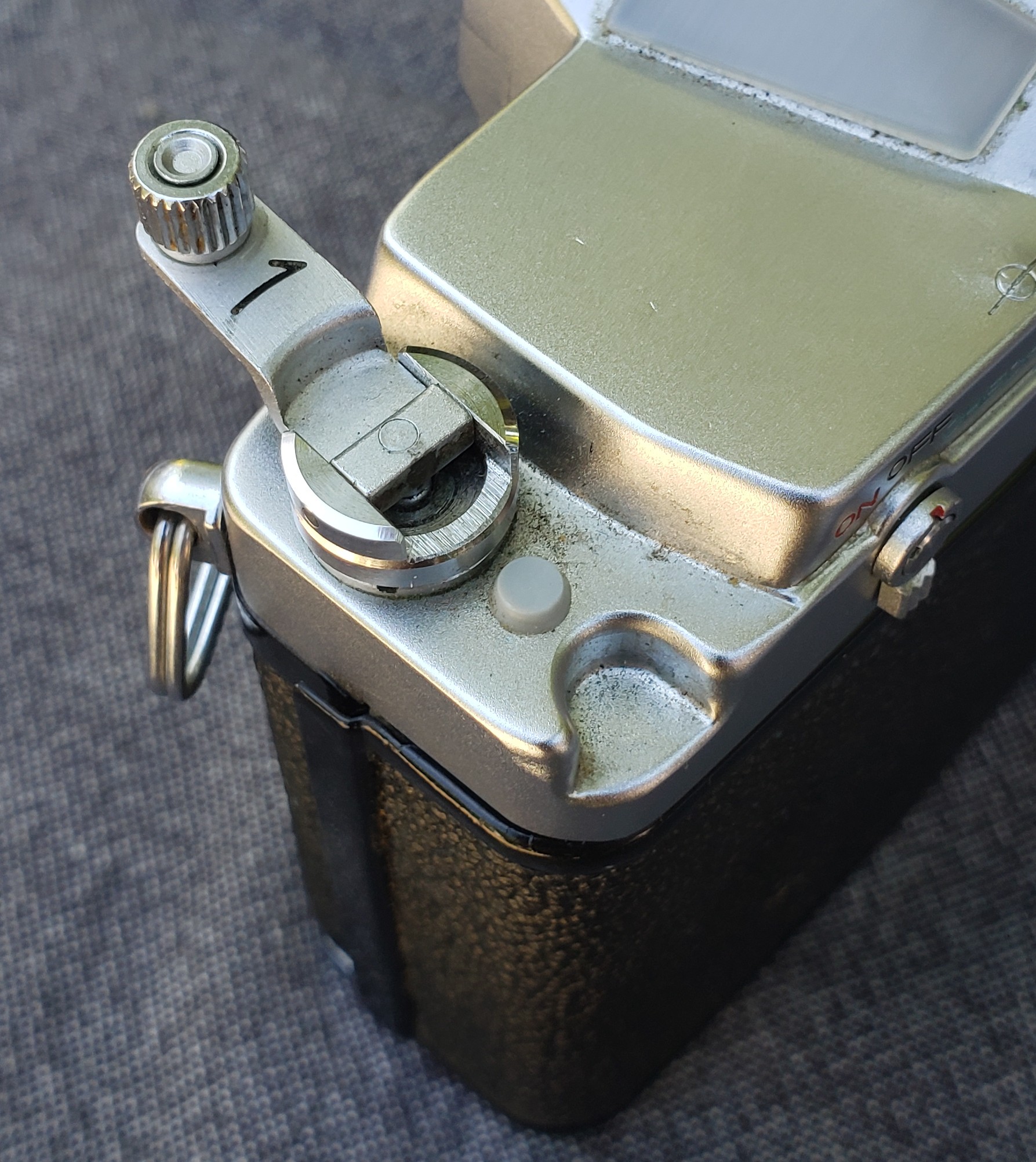Rewind knob handle is present.