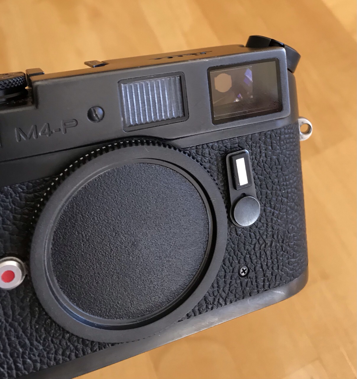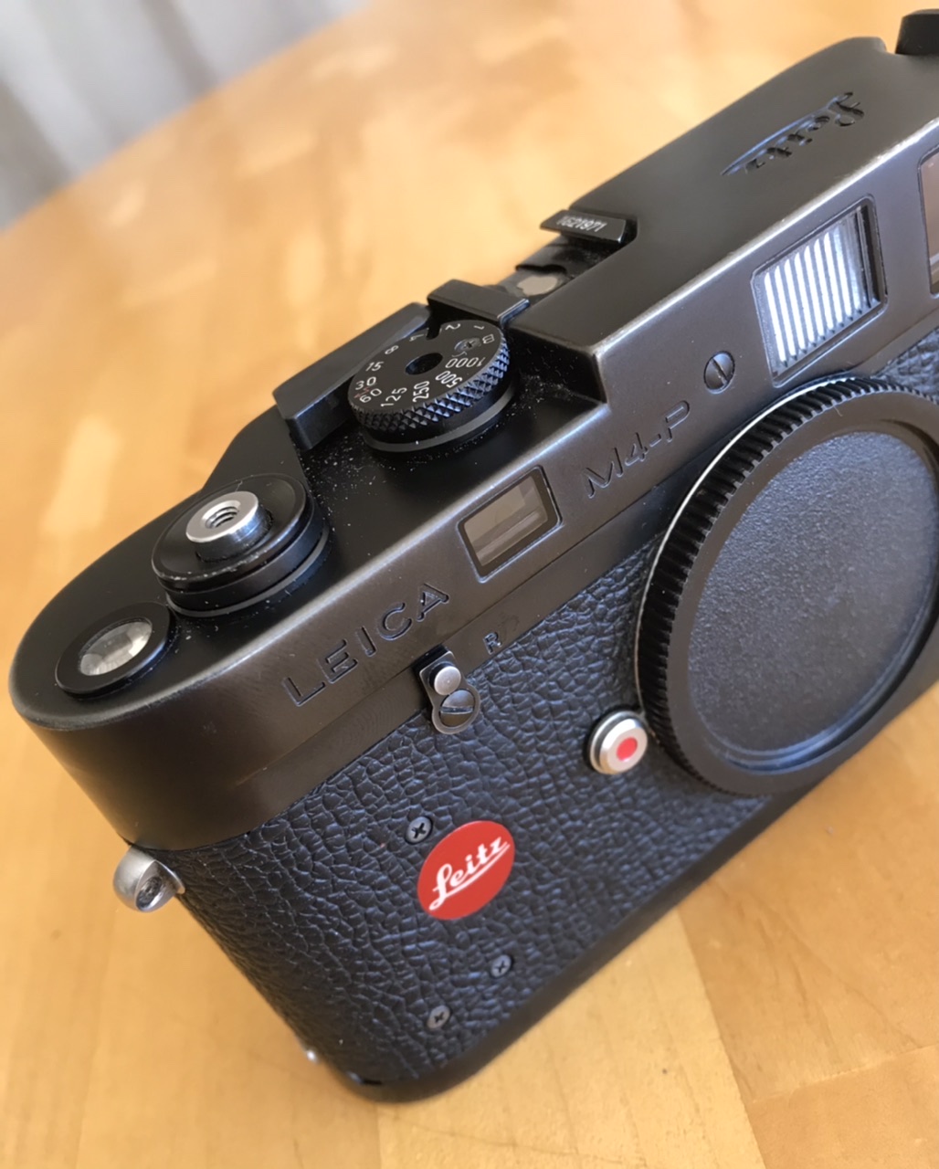 Leica M4-P in well used condition. Rangefinder is clear, bright, contrasty and very accurate. Film transport is smooth and frame spacing is always perfect. Shutter curtains are good. Slow shutter speeds are erratic. Over all a nice user camera body.