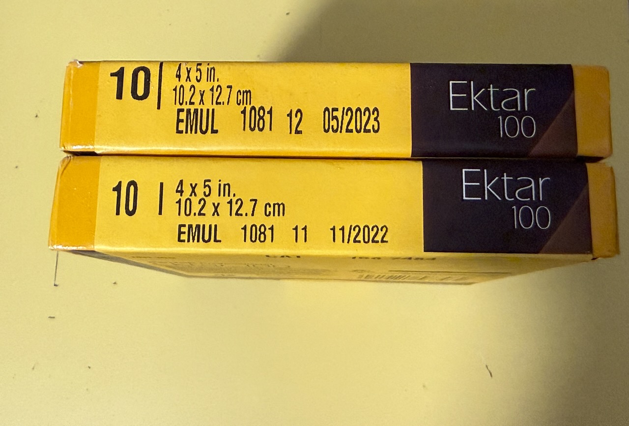 Ektar 100 4x5 10 sheet boxes. Two boxes available $50.00 each box.