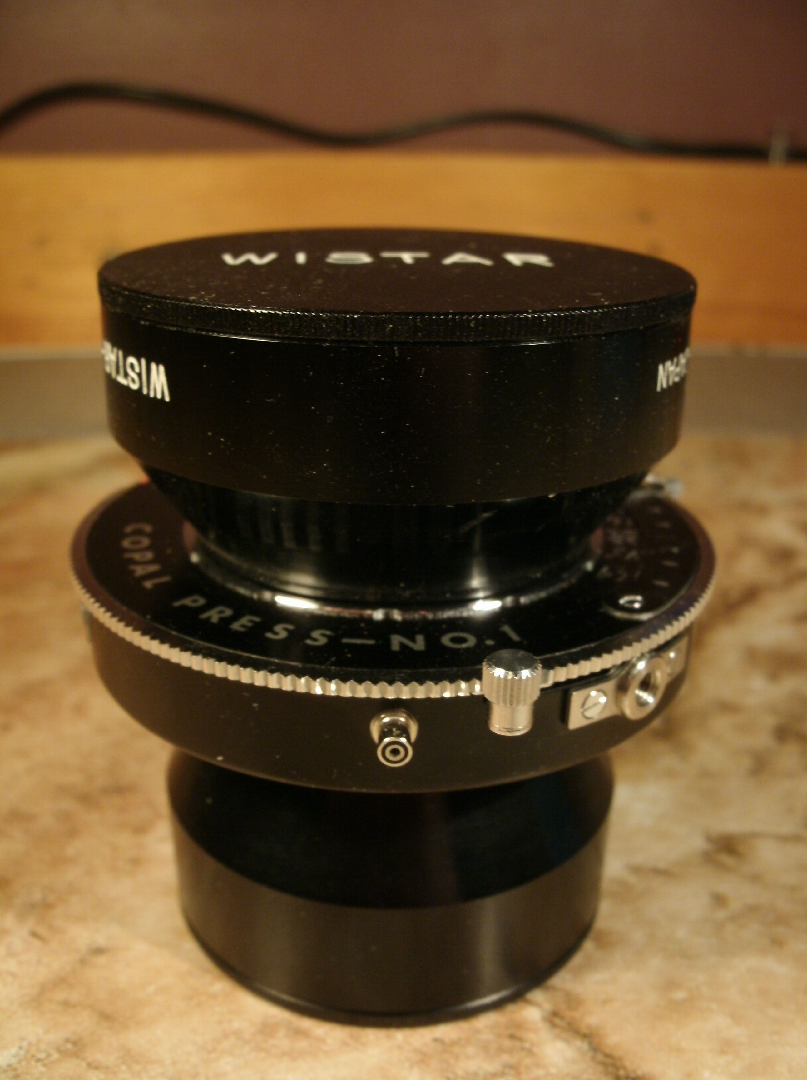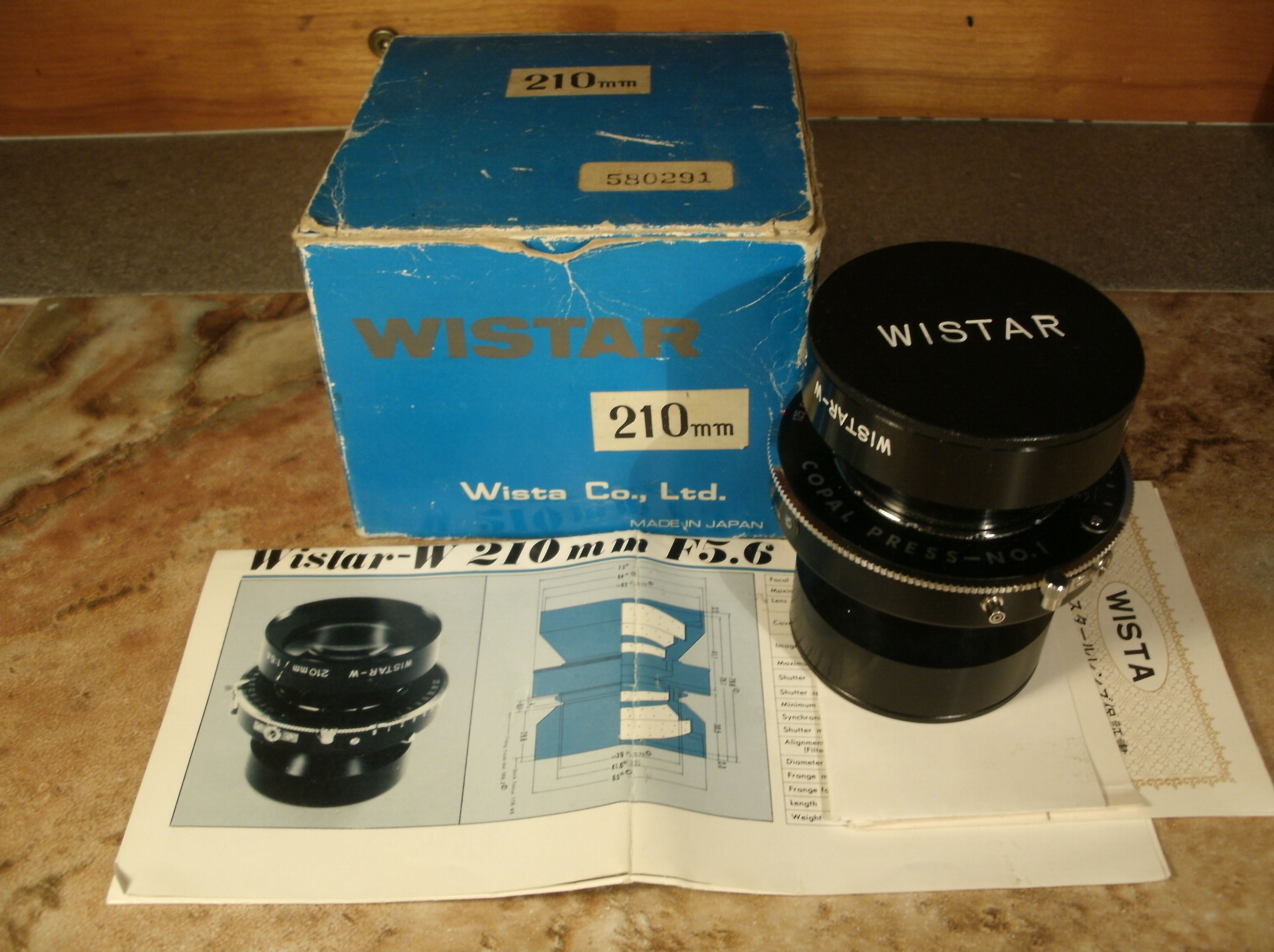 Image circle of 295mm, more than enough for coverage with 4x5 or 5x7(maybe even whole plate). My research shows this lens was made by Nikon for Wista, Comes mounted on a Wista Copal-1 Press shutter(the norm for Wista lenses) Speeds are accurate, no oil on the blades, it's clean and crisp. Second cable release socket for Wista auto shutter close when a film holder is inserted into the camera. There is a preview lever that opens the shutter. Speeds are B, 1-125, aperture marked 5.6-64, retaining ring is included. Lenses are very clean, no haze, fungus, or scratches, minimal dust. Comes with original metal screw in front and rear caps, filter size 67mm. Original box and paperwork included.