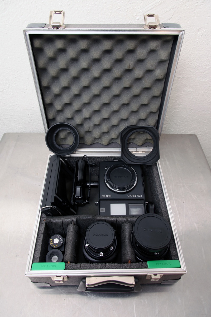 Polaroid 600SE, lenses, accessories, case.
