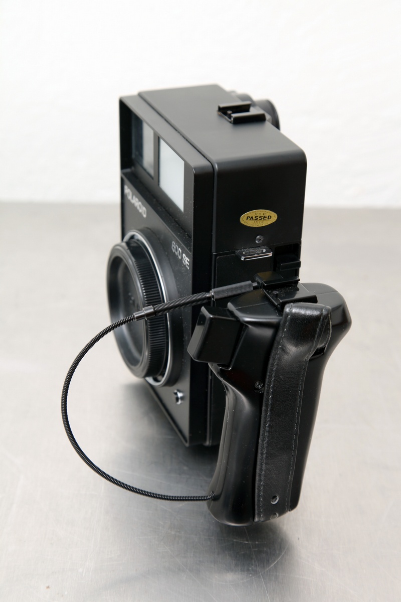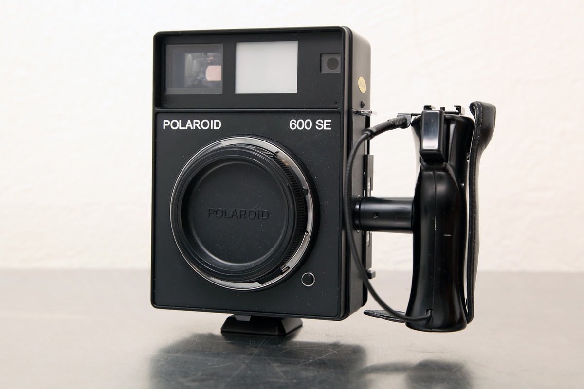 Polaroid 600SE with handle, strap, and body cap.