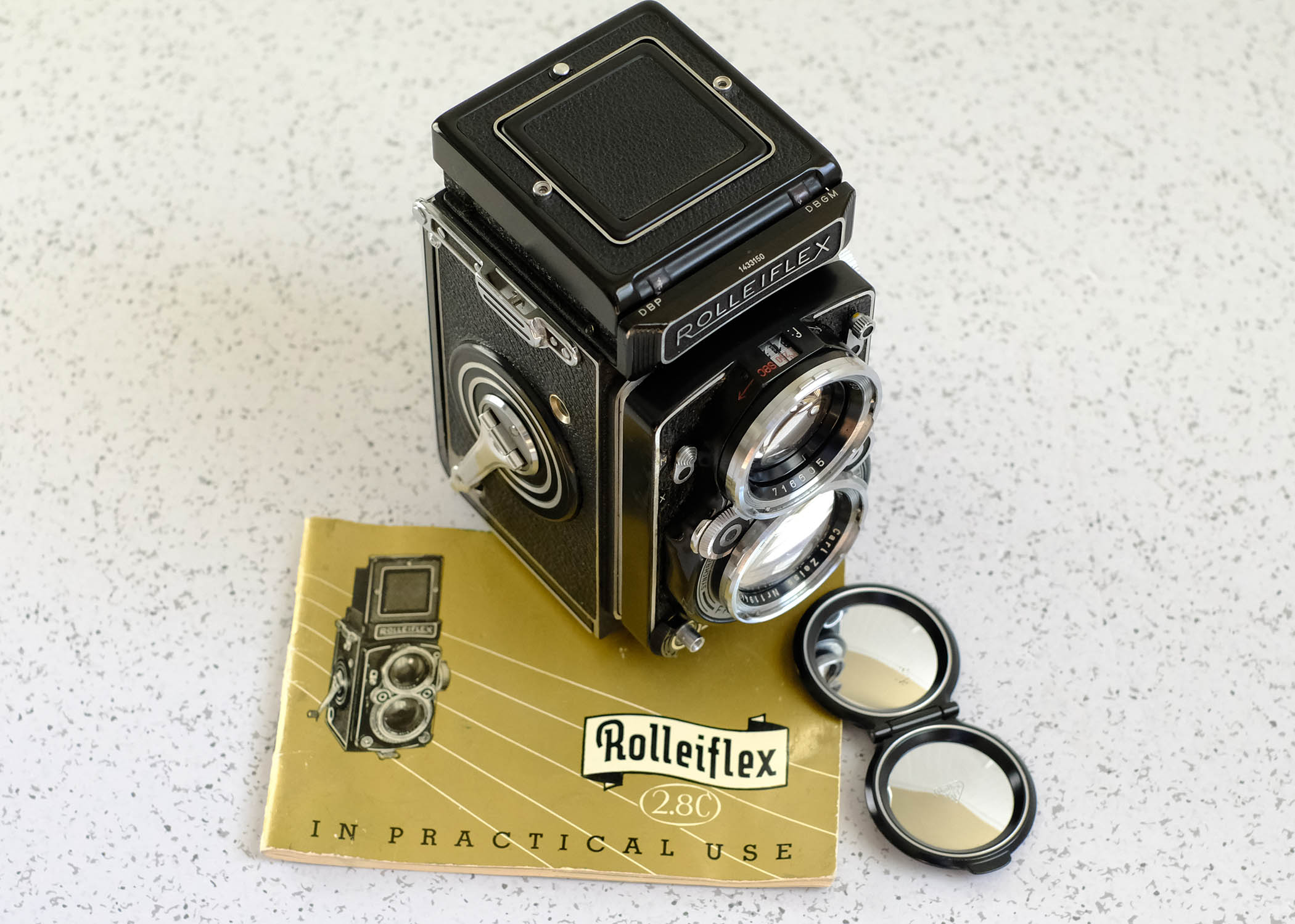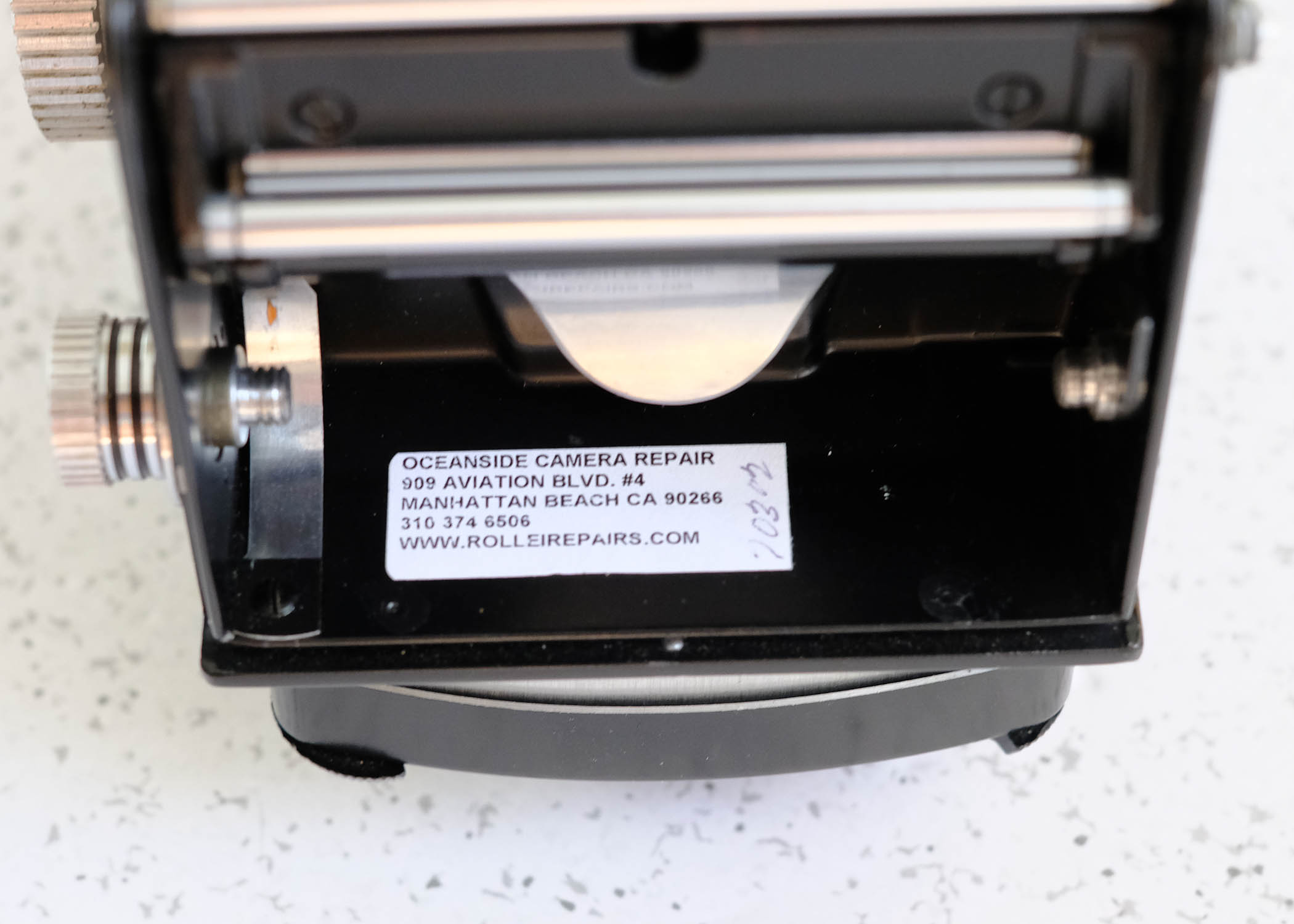 For sale, a fantastic Rolleiflex 2.8c TLR camera in near mint condition, S/N 1433XXX, produced ca. 1954 with desirable 10-bladed aperture. CLA’d by Harry Fleenor of Oceanside Camera Repair in April 2017 (service sticker present - see pictures) and runs beautifully. Camera has no dents, dings or scratches that I can detect other than around the tripod mount, it’s a real time capsule. I’ve closely examined both the taking and viewing lens and they appear to be flawless, save for a couple of very tiny dust particles. No “cleaning marks,” coating issues or other nonsense. Beattie Intenscreen bright screen with split image micro prism installed during the CLA and makes a huge difference. Shutter speeds are spot on. This camera was clearly a prized possession and seldom used.