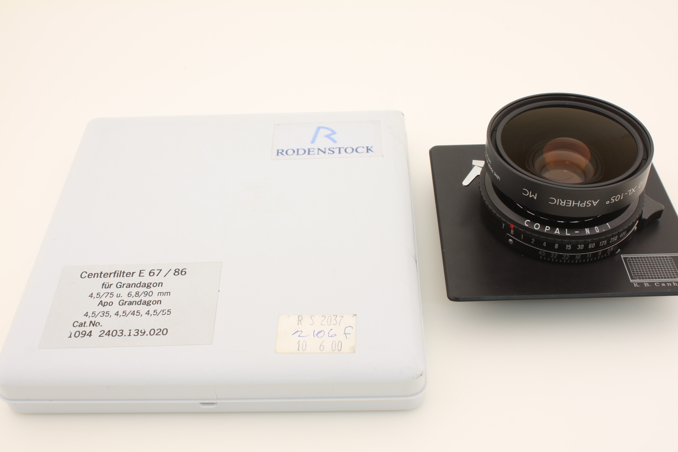 For sale is the well praised Schneider Aspheric 105 degrees Super-Symmar XL 110/5.6 Copal #1 completed with a Centerfilter E67/86