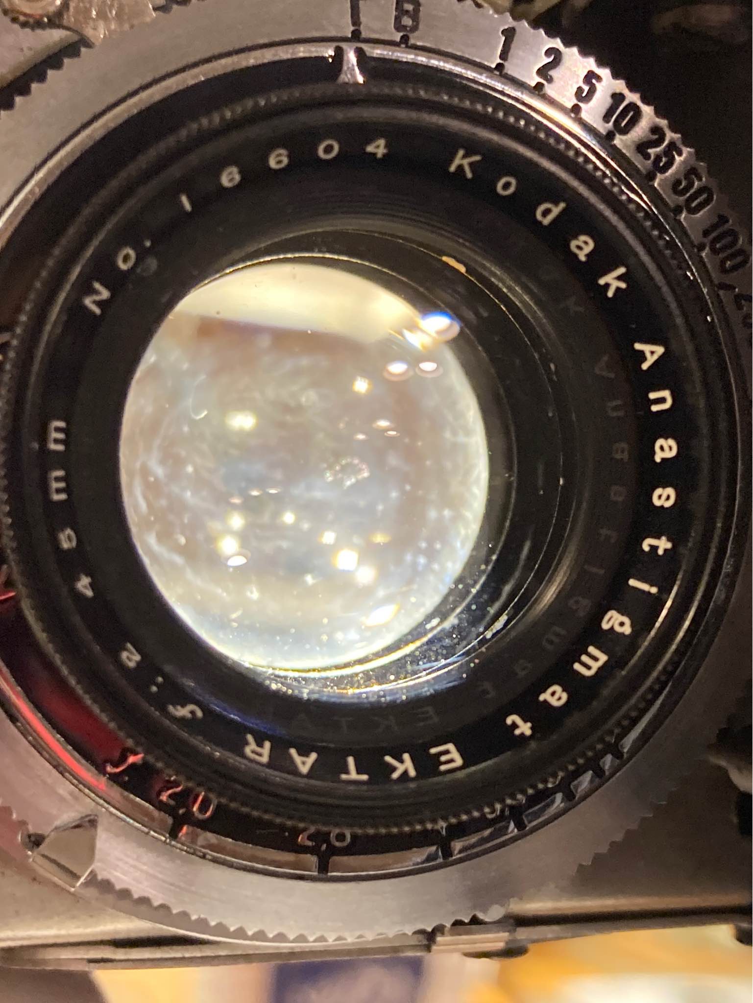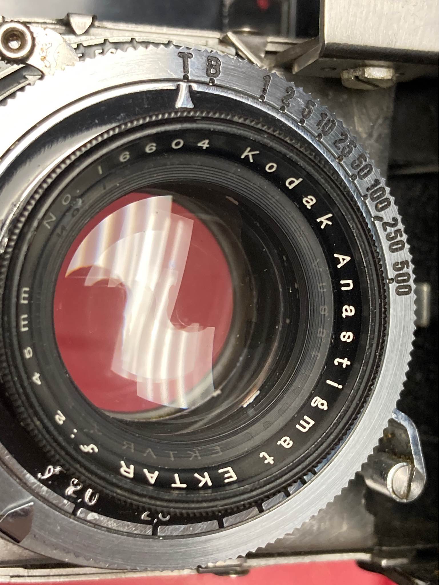 For Sale: The classic art deco Kodak Bantam Special Rangefinder Camera. This example has about 96% of its paint intact. That's really good. These are hard to find with complete unbroken paint. So, cosmetically this camera grades a strong 9-, almost 9. Operationally, it needs some love. Lens front elements are clean and clear. The rear elements have light haze. The shutter works most of the time, but it doesnt always cock every time. The cocking lever doesnt always catch. Needs a cleaning. Viewfinder a bit hazy. RF is accurate and that window is clear. So cosmetically 9-/9, operationally 8-