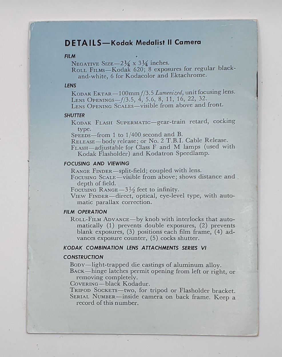 Good useful information from Kodak about their flagship 6x9 camera from the post-WWII period.
