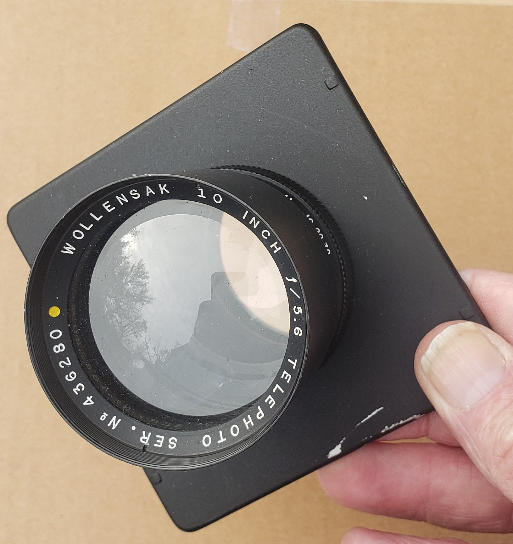A very nice, used 10" (254mm) f/5.6 Wollensak Telephoto Yellow Dot Lens.