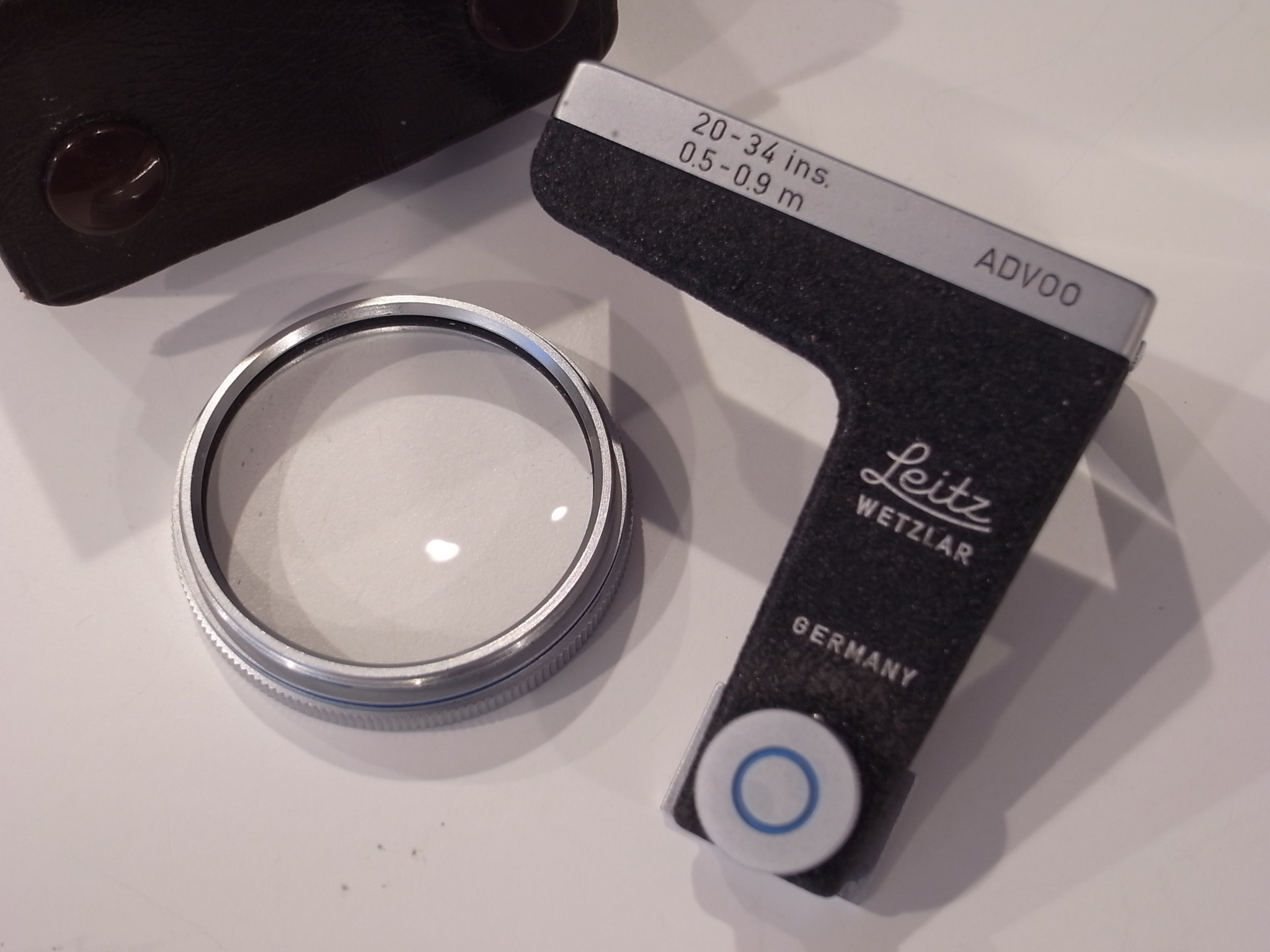 1. Leica ADVOO close up adapter for the IIIg and 50mm lenses with 39mm filter threads. I know this works well on the collapsible Summicron and the Elmar lens and I've heard it works with the Summitar if that has the 39mm adapter on the front. In excellent condition in it's original case. $120.00