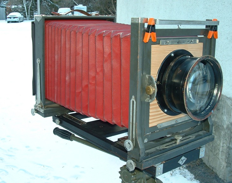 Ok, so maybe this is a bit silly to do just for the heck of it, but I did manage to find a bit of spare time to rip out a couple of lens boards for the old Agfa 8x10 and get these two old Aero lenses mounted. The small one is a 6" F2.9 from a Williamson F24 Aerial camera that I bought cheap and scrapped (note : if anyone wants a magazine or spools or other parts, let me know shortly as garbage day is coming). The slightly larger one :smile: is a Ross 20" F6.3 Aero Expres that I bought at a garage sale last summer.