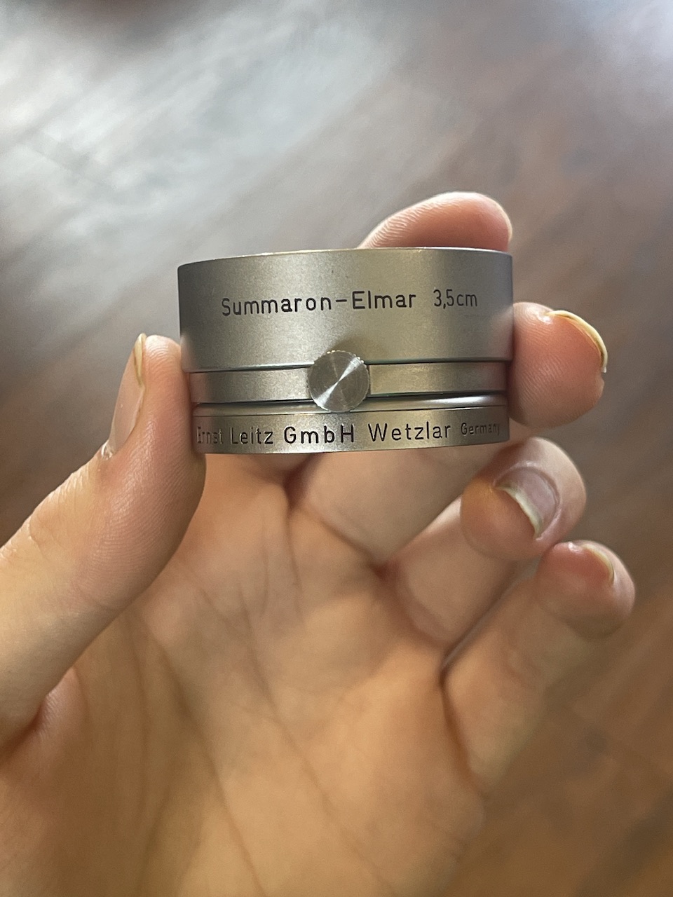 Leica slip on lens hood and yellow filter. Filter is clean. Hood is for a 3.5cm Summaron-Elmar lens. $105 including shipping within the US.