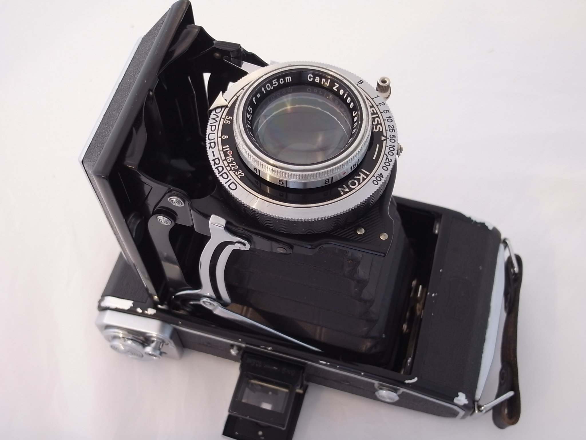 2. Zeiss Ikonta 521/2 6x9 folding camera with the better Tessar lens AND the faster Compur-Rapid shutter. Camera works great, lens is clean and clear, all functions operate nicely. A little paint missing on black trim otherwise, super nice.