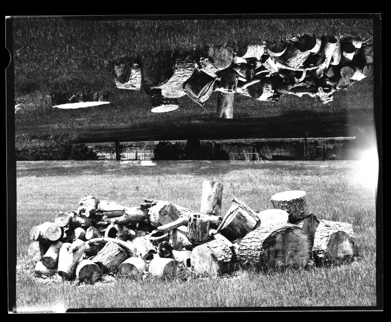 First, you cut your darkslide just about in half -- that is why you don't have any unexposed area between the two images on the negative. If you try it again, you want to leave more darkslide than you cut out...that way the strip along the center of the neg never gets exposed because the modified slide covers it in both orientations. If the slide is 4" wide, you want to cut out only a 1 7/8" wide section.