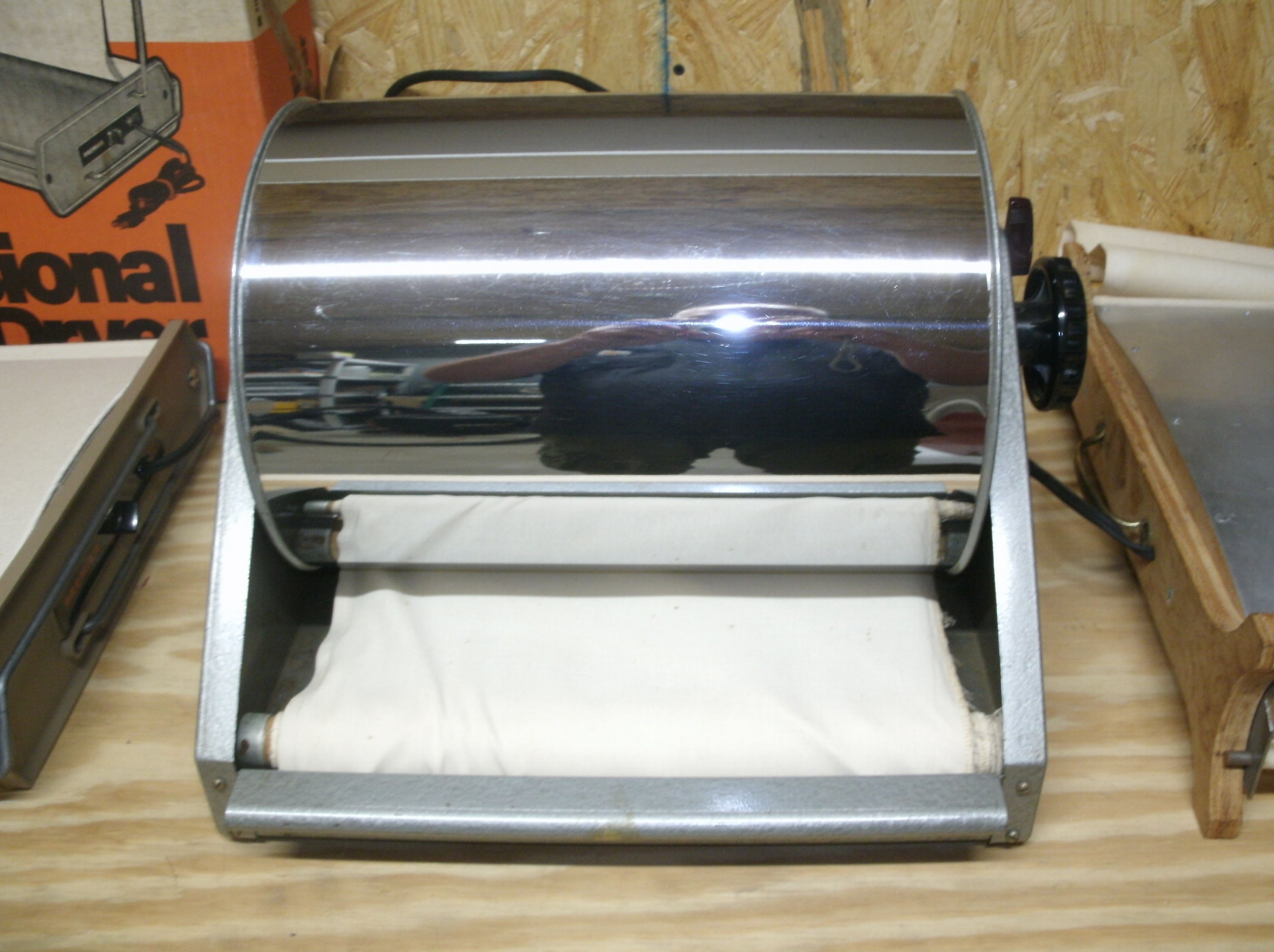Drum dryer, holds sizes up to 11x14 prints. Variable thermostat control, off/low-high settings. Works as it should.