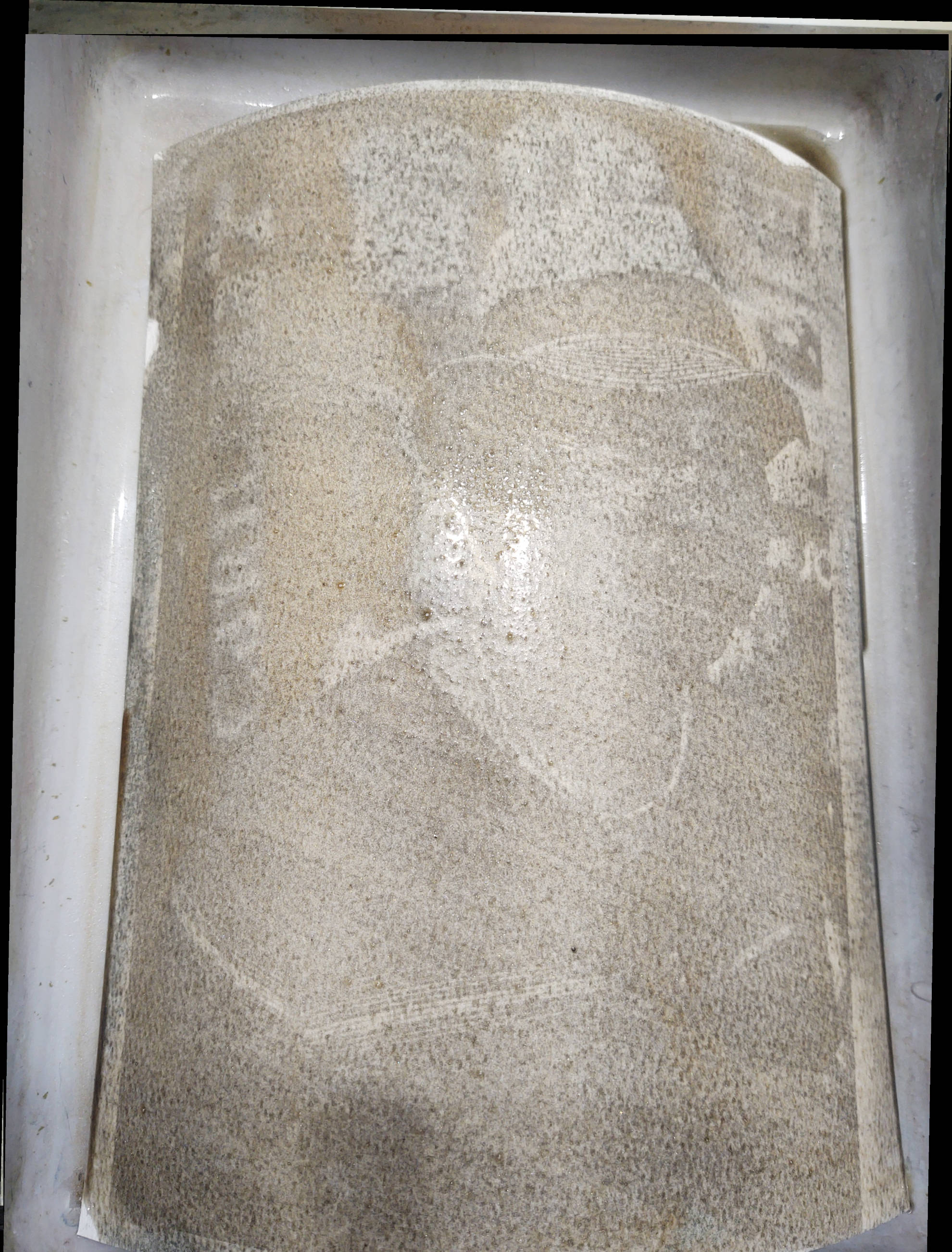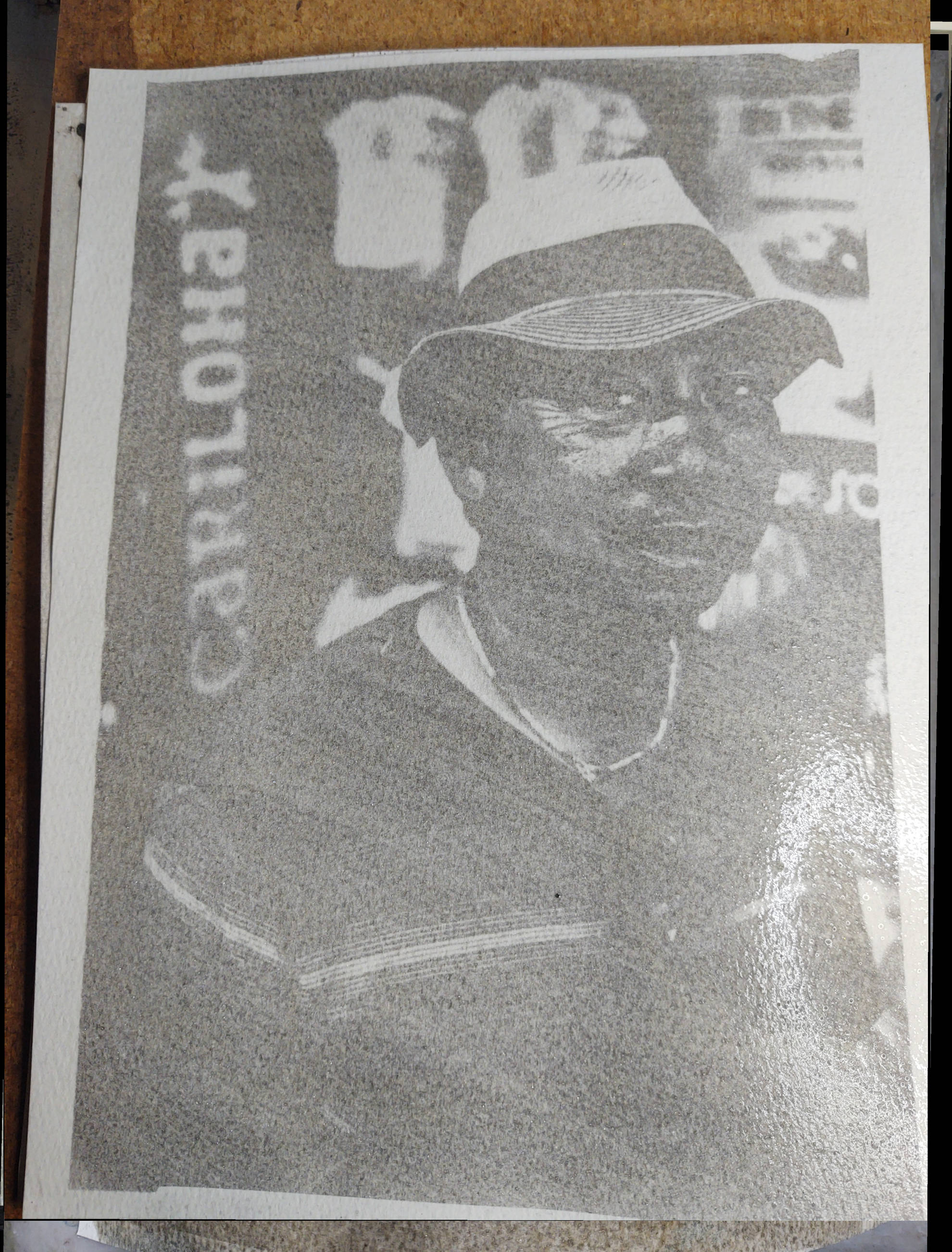 He mixes a certain amount of CMC carboxymethylcellulose, gum Arabic, water and FAC to make an emulsion which you then mix with a pigment to create a sensitized coating on watercolor paper.