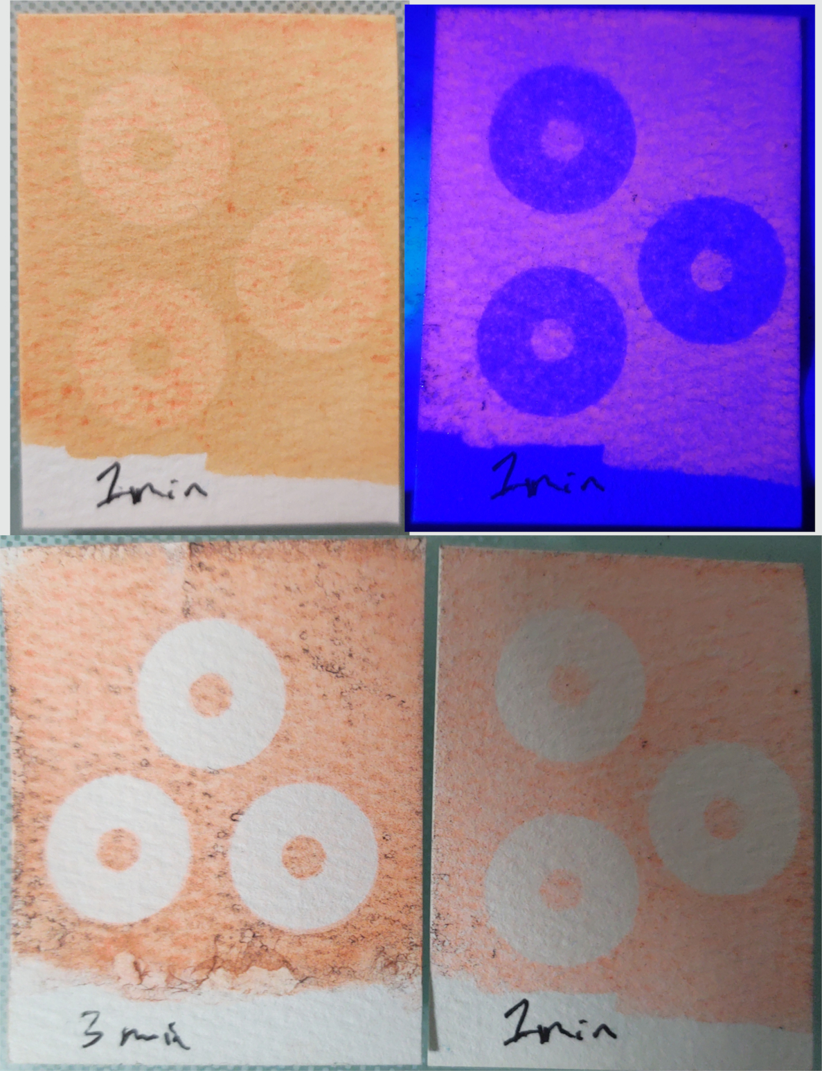 I've tried and tried to replicate the process using ~380nm -390nm uv sources but so far not much of a success but I though to maybe share some experimental results. I'm not a chemist and I do this as a hobby trying to not learn much more than necessary. I am an opto mechanical engineer, but again don't intend to do much more than helping pass the word and experimenting with whatever I can find.