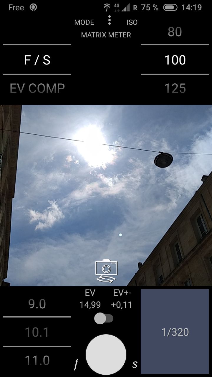 So today April 14, 2025 at 2:19 pm in Bordeaux, France: EV 14.99 in full sun. Measured with my smartphone app: