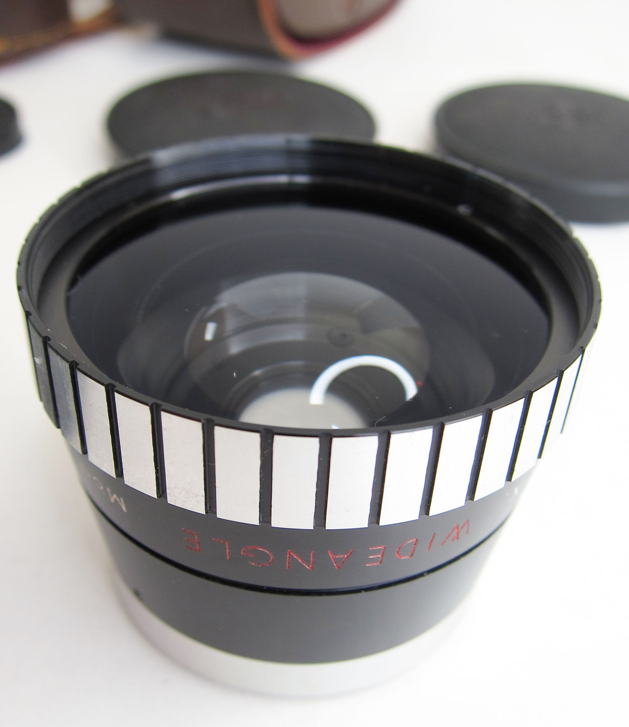 Included is a teleconverter aux lens and viewing lens, also a wide angle aux lens but no viewer for that.