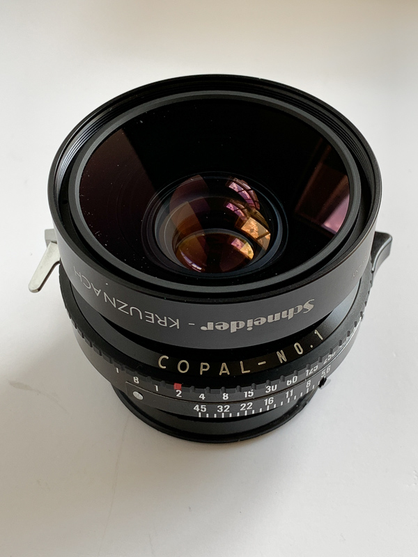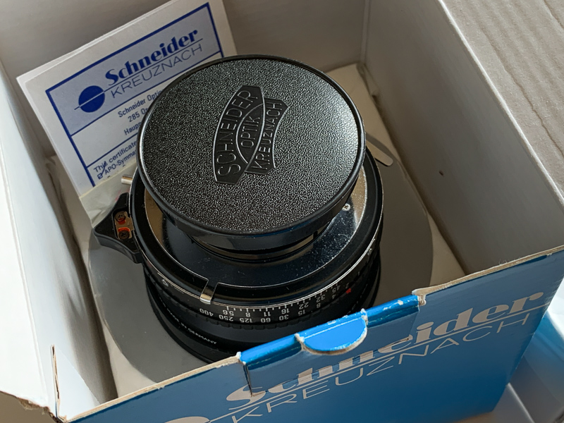 This lens in in like-new condition, perfect in every way with no marks, scratches, etc. Optical surfaces are pristine and have never been touched. Lens is mounted in it's Copal 1 shutter. All speeds accurate. Im am the original owner and purchased the lens new in 2007. The lens comes packaged in the original box with all papers, warranty, etc. Huge image circle for 4x5 allowing extreme movements.