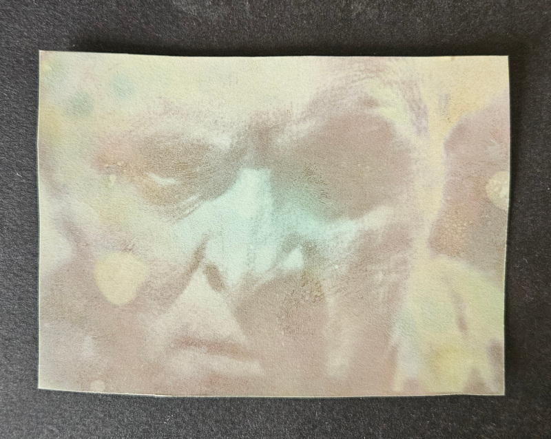 physical developer which plates out more copper on the seeds created by illumination. This is why the previous image develops on the cover sheet, and also why the image appears copper colored rather than black like finely divided copper, the grains grow quite large that way.