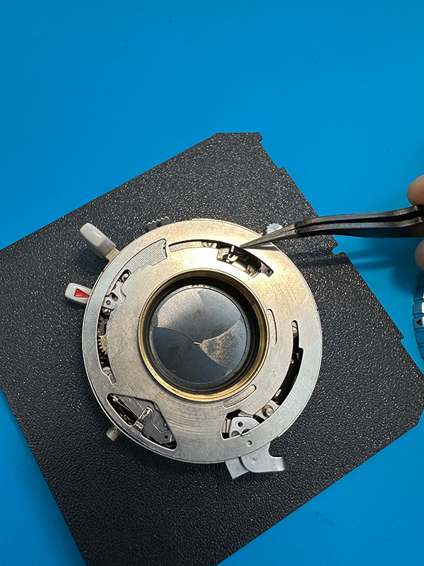 Long story short, got a good deal on a 135 mm Symmar lens attached to a Synchro-Compur shutter (#051-24). Out of the box fast speeds all worked well, but at slow speeds the shutter would stick open and would require gentle to get it to close. I have repaired small things in the past so I decided to give it a go after scouring for repair guides and videos. I opened the shutter, removed the cam ring, cocking ring and got the escapement out, gave it a clean, lubed it up with watch oil and replaced all the parts. So far so good. Once reassembled fast speeds worked as usual, but now the slow speeds all seemed to fire fast too. Upon reinspection it seems like the pallet arm that controls the slower speeds doesn't want to follow the groves in its cam. It has no tension pushing it towards the inside of the shutter housing. When I cock it to a 1s position and place some gentle pressure on the pallet I can get the slow speed mechanism to work. I'm a bit stumped (having taken it apart and put it back together a half dozen times). I've read that some escapements need to have a spring set to a particular diameter to get the pallet to work, but that doesn't seem to be the case here. It also doesn't seem like the coverplate has any protrusions that interact with the pallet arm. I'm a bit at a loss but I feel like I'm so very close to getting the damned thing to work. Any advice would be amazingly appreciated. Some pictures for context: