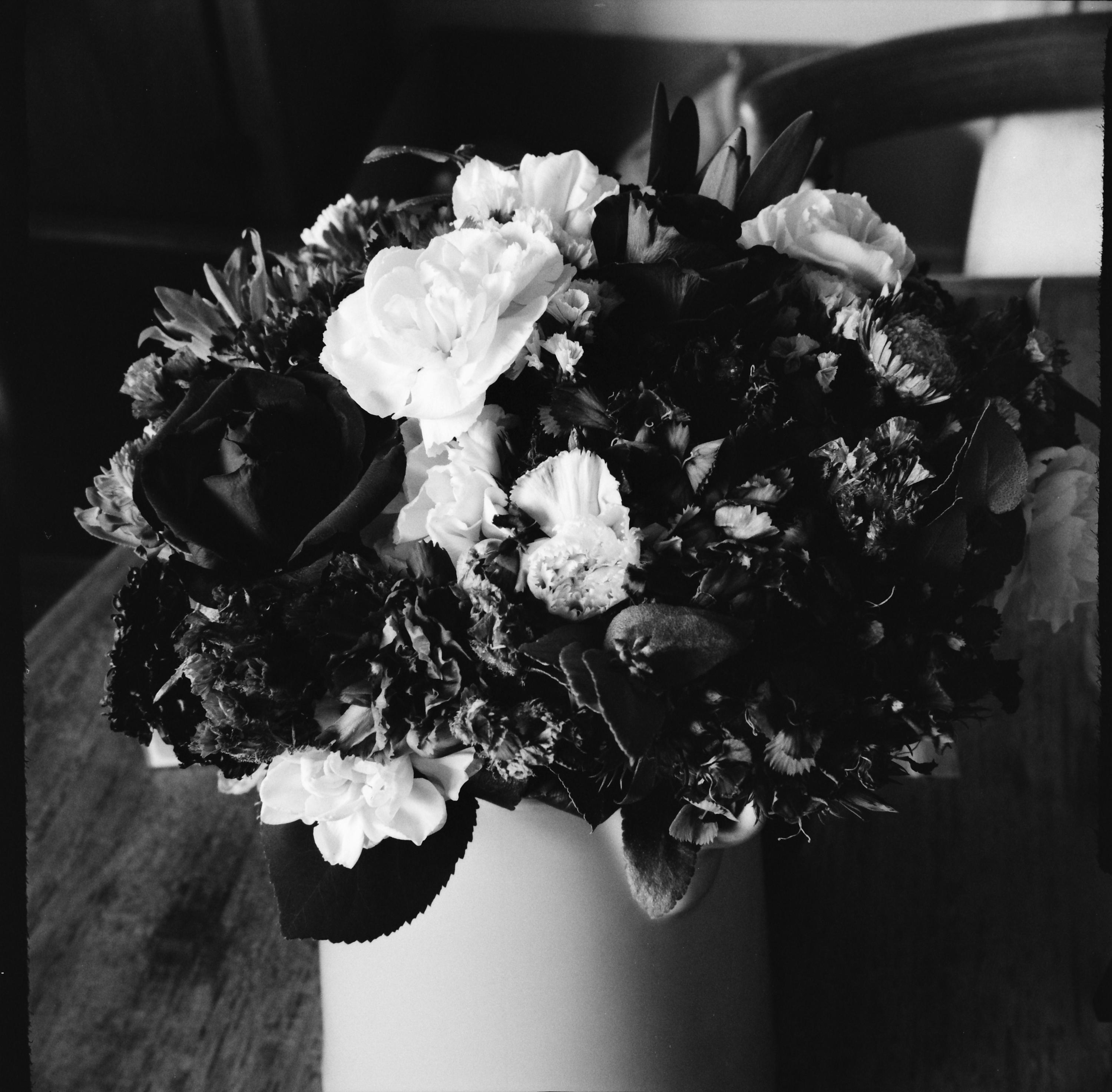 In these two examples the overall contrast is too high. Both photos were underexposed as I forgot to account for bellows extension in these up close photographs, but even the the light coloured petals are blocked out completely, whereas red and dark purple flowers have no density:
