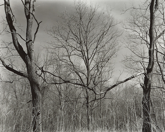 Sunny day with some crazy clouds roaming about. Have full detail in the the blacks on the neg if you wanted to go get them - print has strong blacks with a hint of detail. The white weeds in the foreground are held on the print. Not much dodging and burning - maybe 4 simple steps.