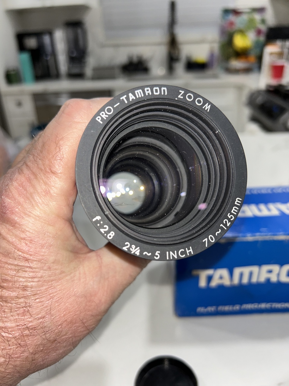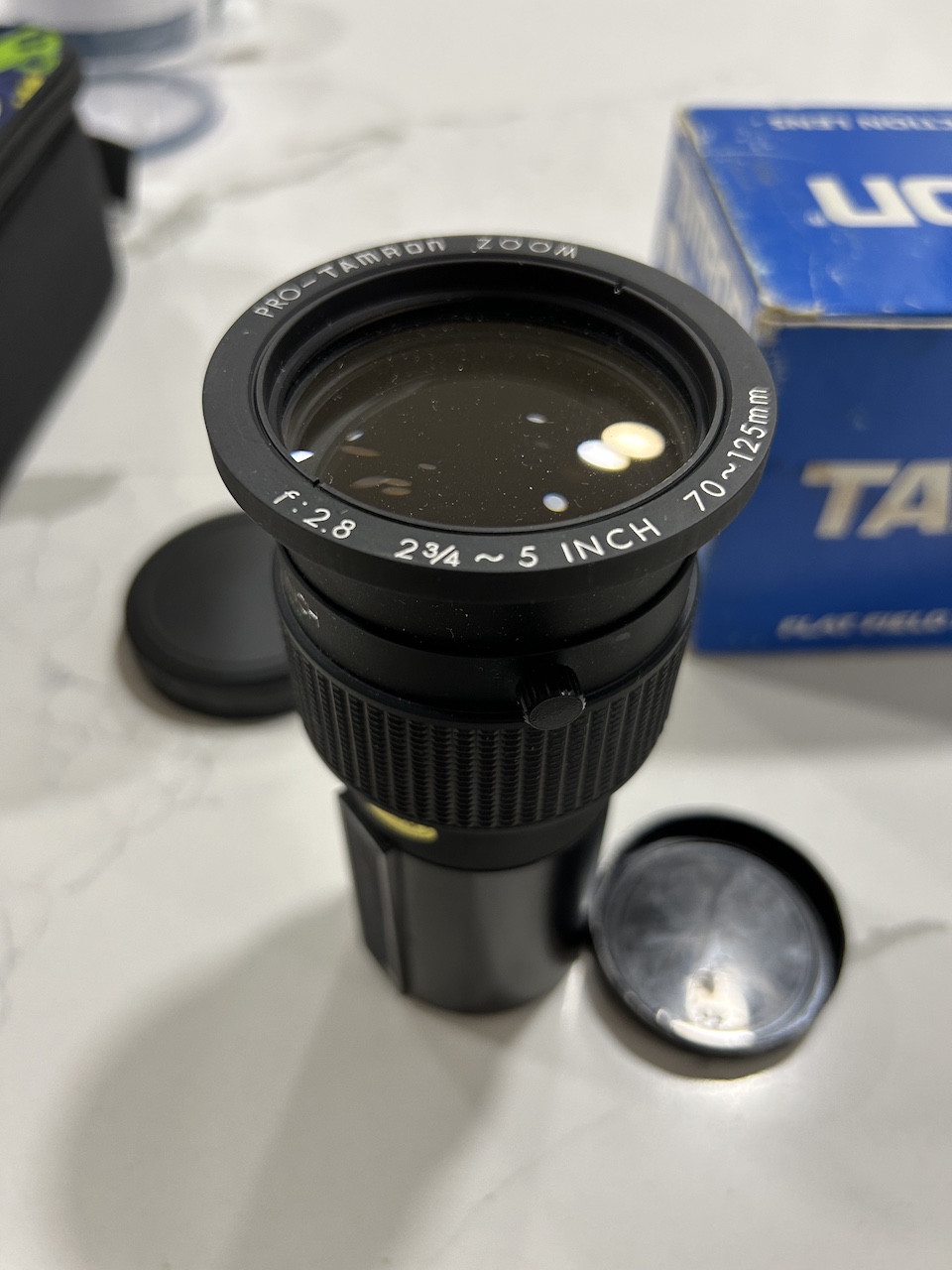 I am selling a new-old-stock Tamron 2-3/4" - 5" F2.8 Flat Field Projection Lens. This is a beautifully crafted Japanese lens. I do not know which projector this was made for, but most likely Kodak slide projector models. The condition is mint.