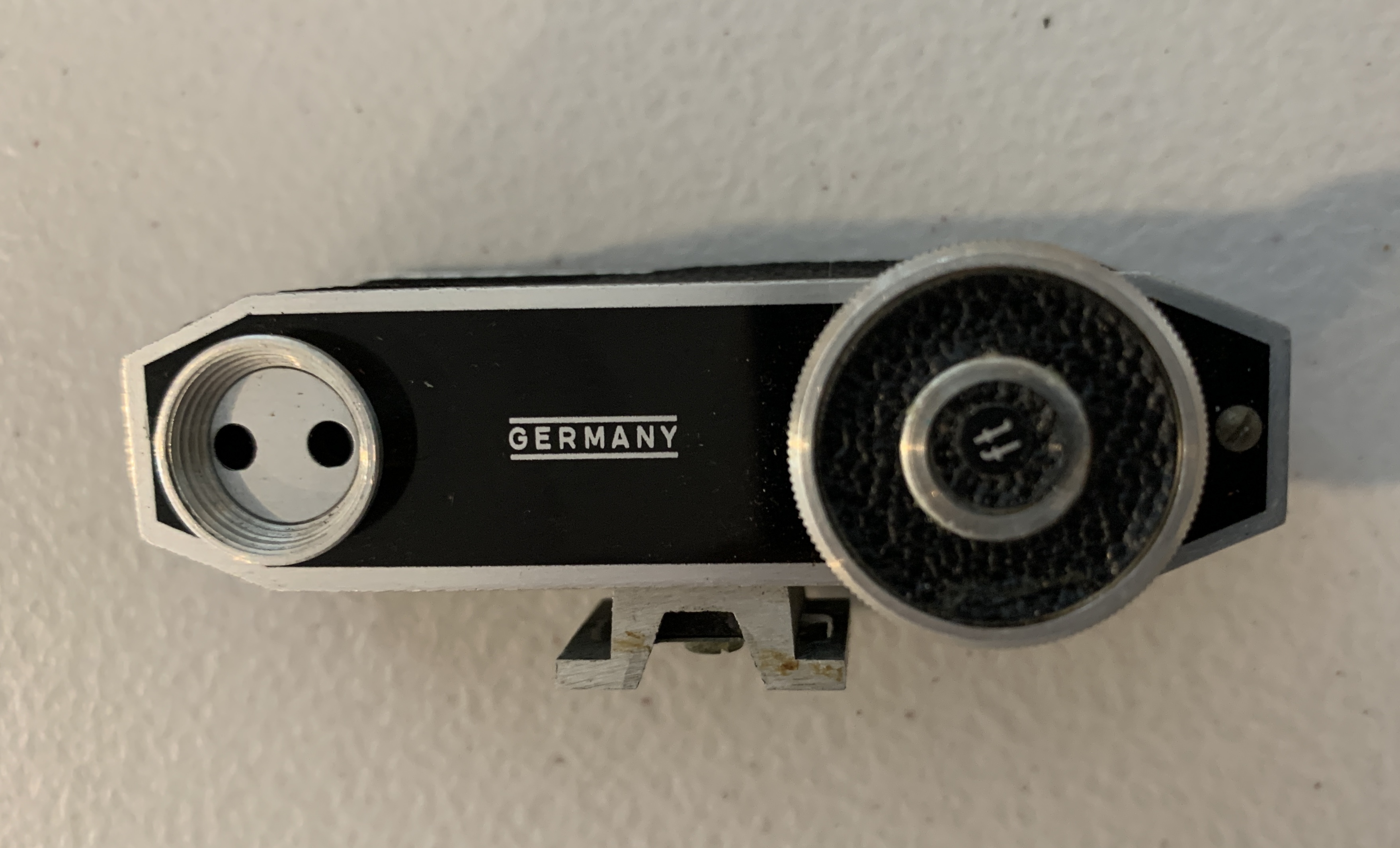 This came with some camera gear I was given. In good condition with case and works smoothly. This is the model that has no external distance scale but the distance scale is viewed through the leftmost hole in the left hand eyepiece. Distance scale in feet is accurate and the image is clear. Takes some getting used to at first but once you are familiar with it is straightforward to use.