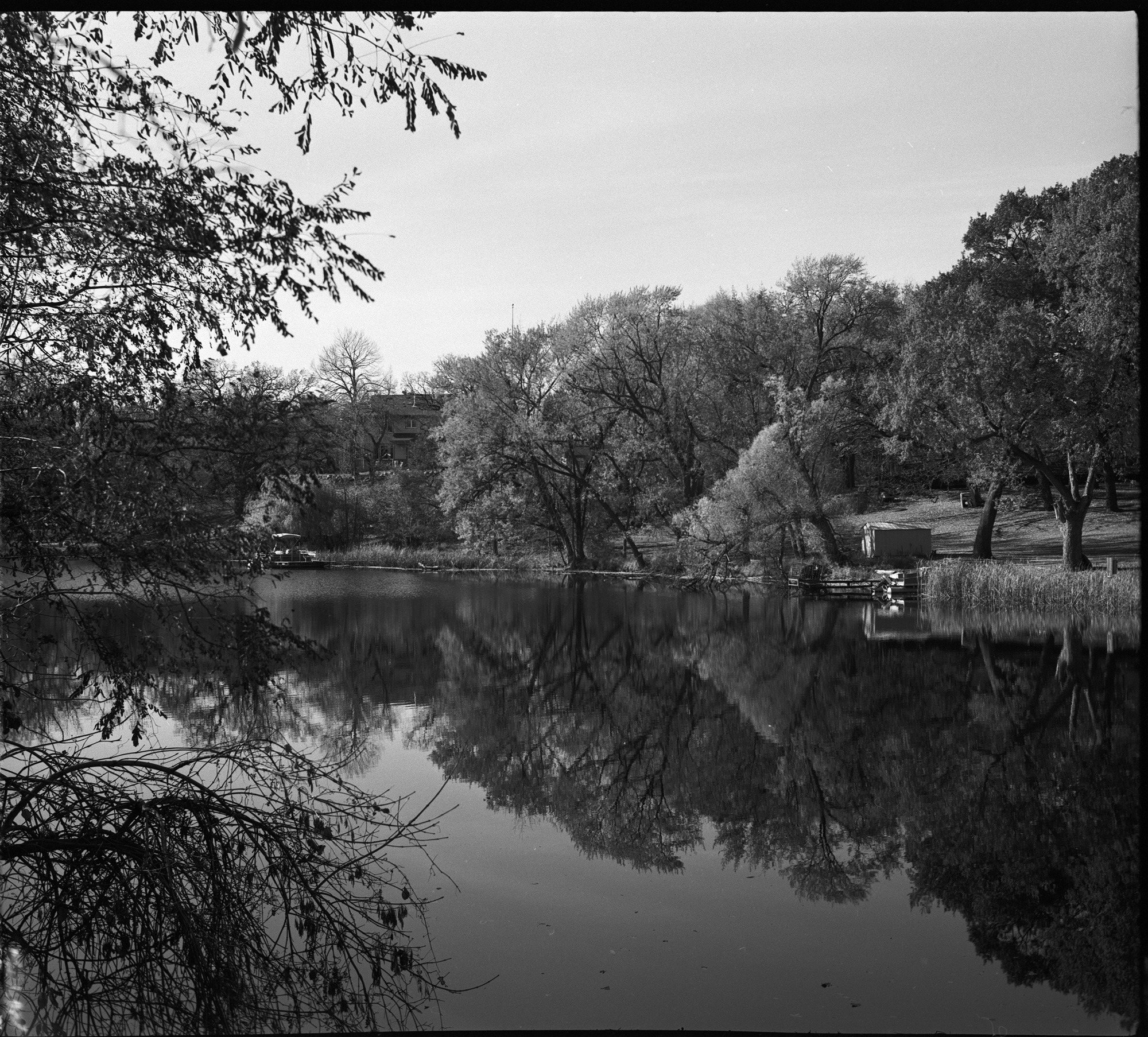 I shot my Dora Goodman 6x6 3d printed camera with a Tessar 100mm F3.5 mounted. It's from a Graflex XL and the Synchro Compur has been tested to be accurate. I used a phone app for metering, who knows how accurate that is, but I've been happy with the results. My wife was shooting her Pentax ZX5n with a Pentax 35-70 F3.5-4.5 zoom. She was using matrix metering. It was a bright sunny day with no clouds, late in the afternoon.
