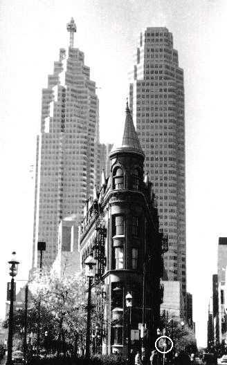 Here are a pair of his images from this post in case wayback isn't working for those links (for reference: the Gooderham Building in St. Lawrence, Toronto, Canada):