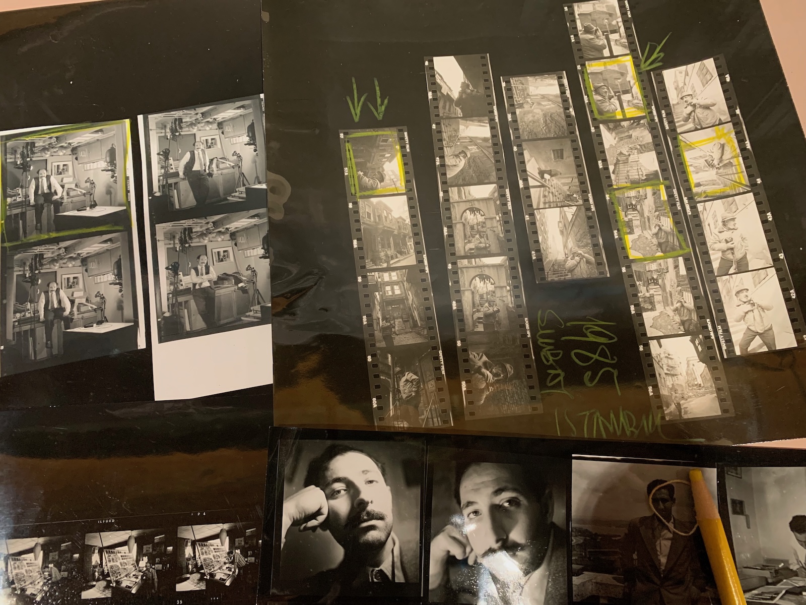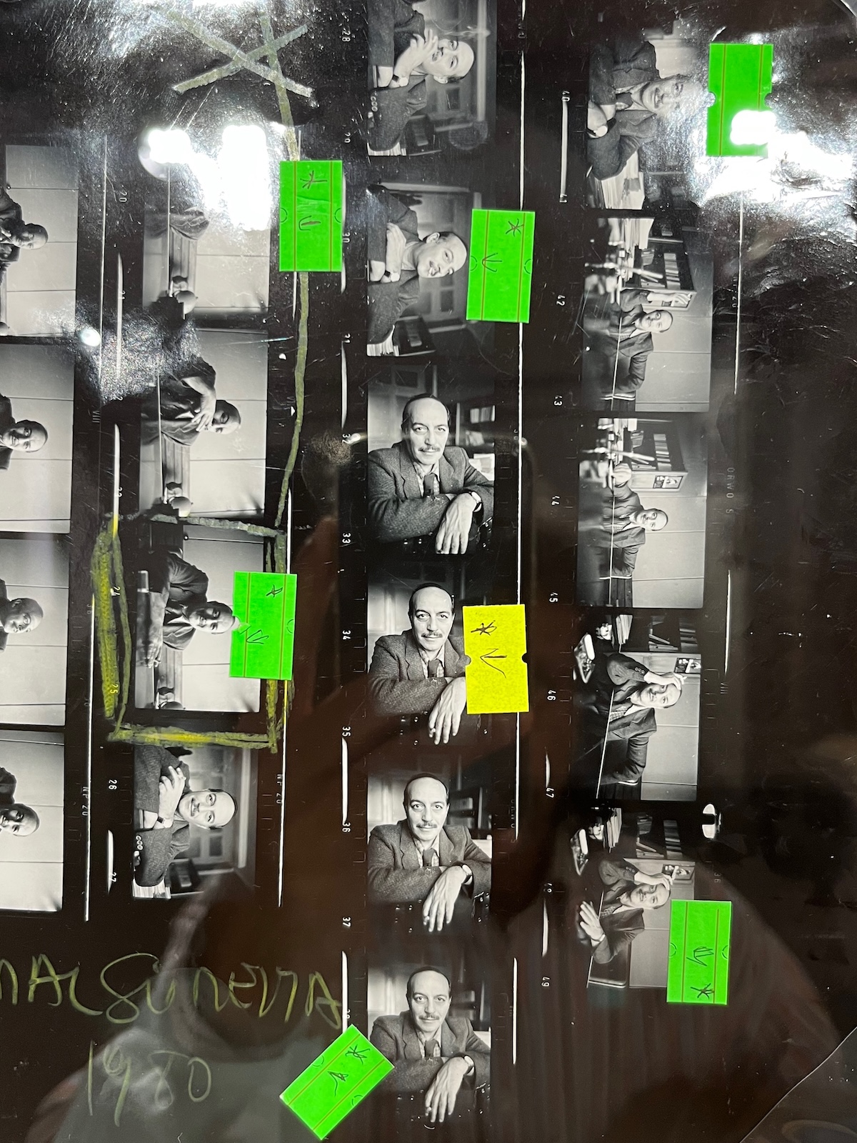 A contact sheet with Turkish poet Cemal Süreyya, dated 1980, on Orwo film: