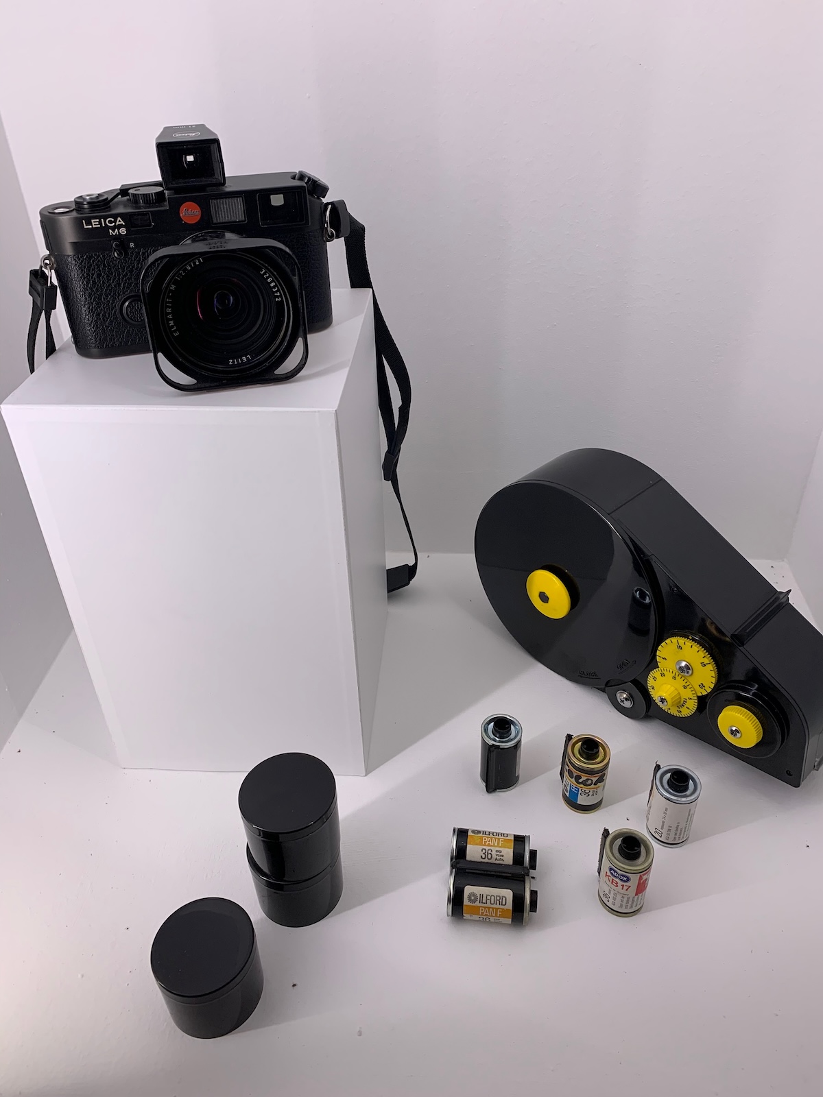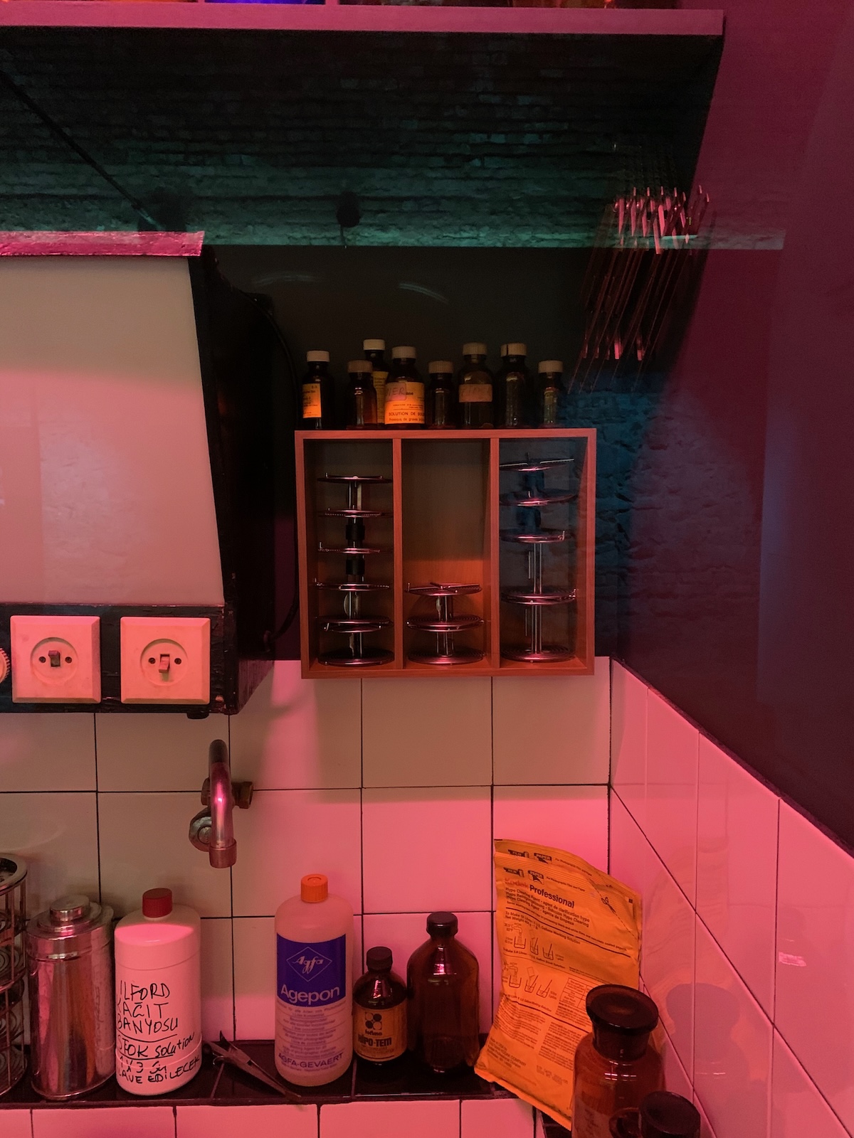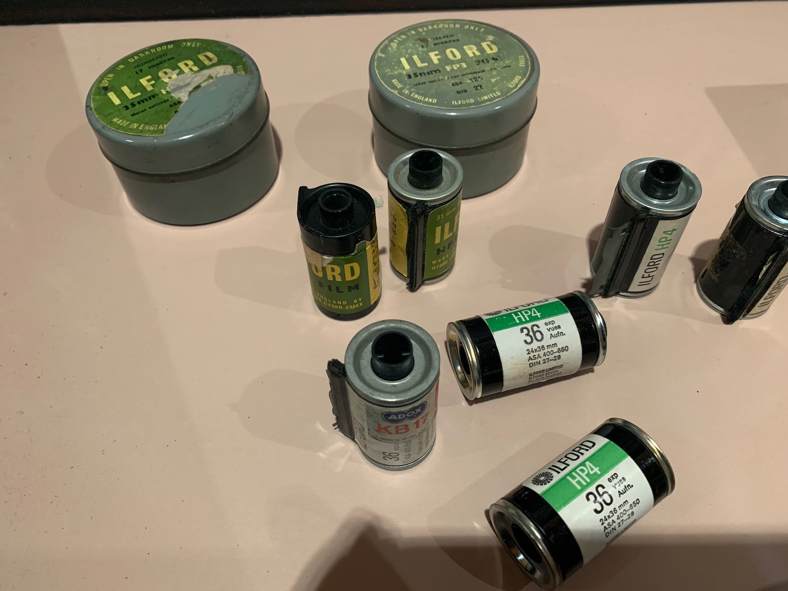 Ara Güler considered himself first and foremost a journalist and a visual historian. He had a long career that started in the early 1950s. Naturally, over the decades he used all types and brands of film. In an interview from the early 2000's he said he uses HP5 for B&W and Kodachrome 200 for colour. But I've been to several of his exhibitions in Istanbul, where a selection of contact prints and other ephemera like old film canisters were on display: Ilford FP3, HP4, HP5, Orwo, Adox, Agfa, Kodak...you name it. He used them all. Being a journalist, he probably was often under time pressure; I've seen photos of him trying to dry wet film with a hair drier...not ideal. However, for his most recent exhibitions the negs were scanned with an Imacon and (probably after meticulous retouching) printed to a superb standard. I was blown away by them, both the B&W and colour work. Below are a few snaps of some of the items on display.