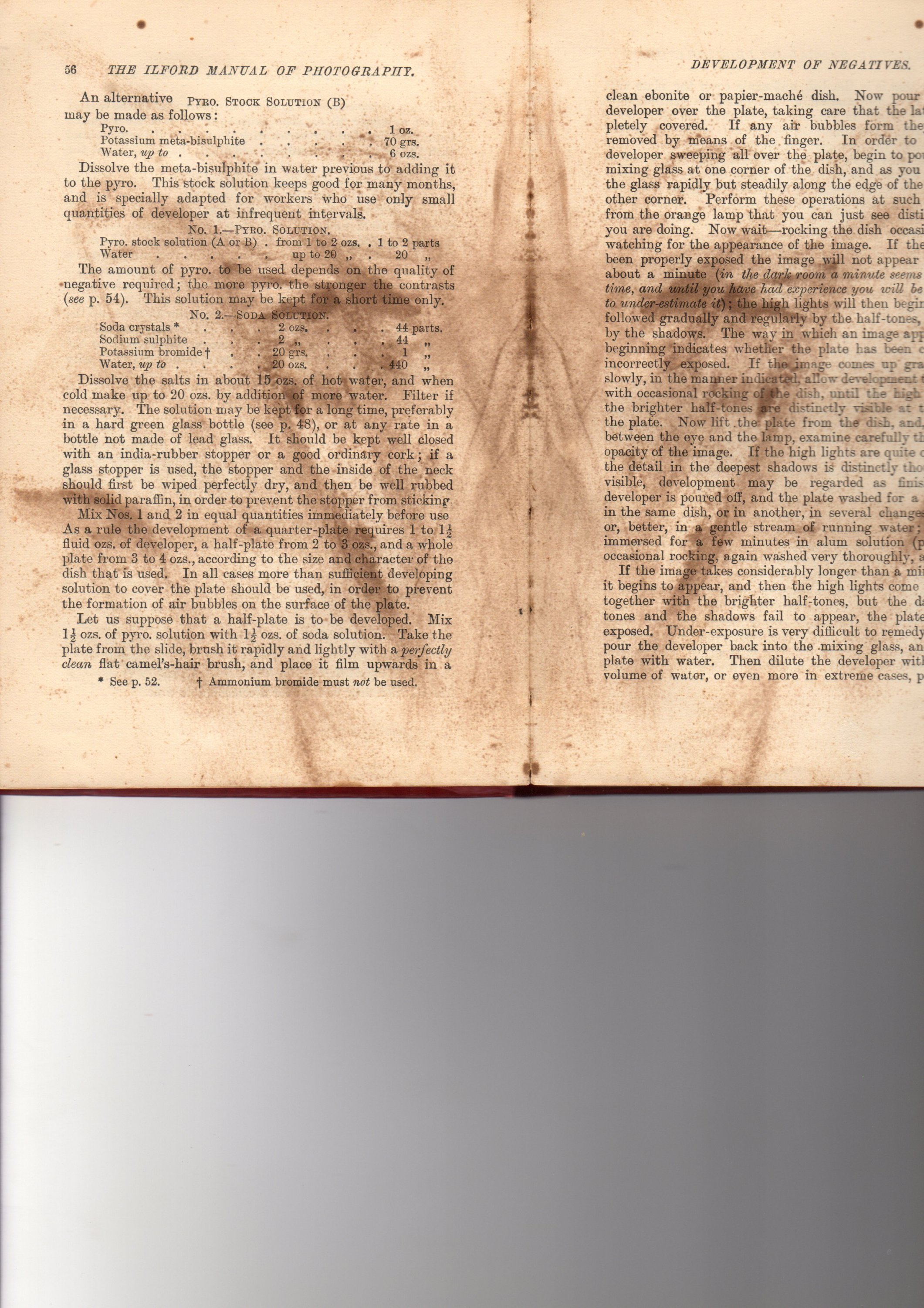 I have been on the look out for a decent copy for years. Today for £2.50 I acquired a 1950 reprint of the 1949 4th edition. Glossy paper and just very slight, if any yellowing. Only had a quick glance on the bus home and discovered 'Negative Card' a low-priced substitue for plates or films for use in the camera. Seems prints were made by taking a picture of the negative image with normal paper. I never heard of this before, which mades the purchase really worthwhile.
