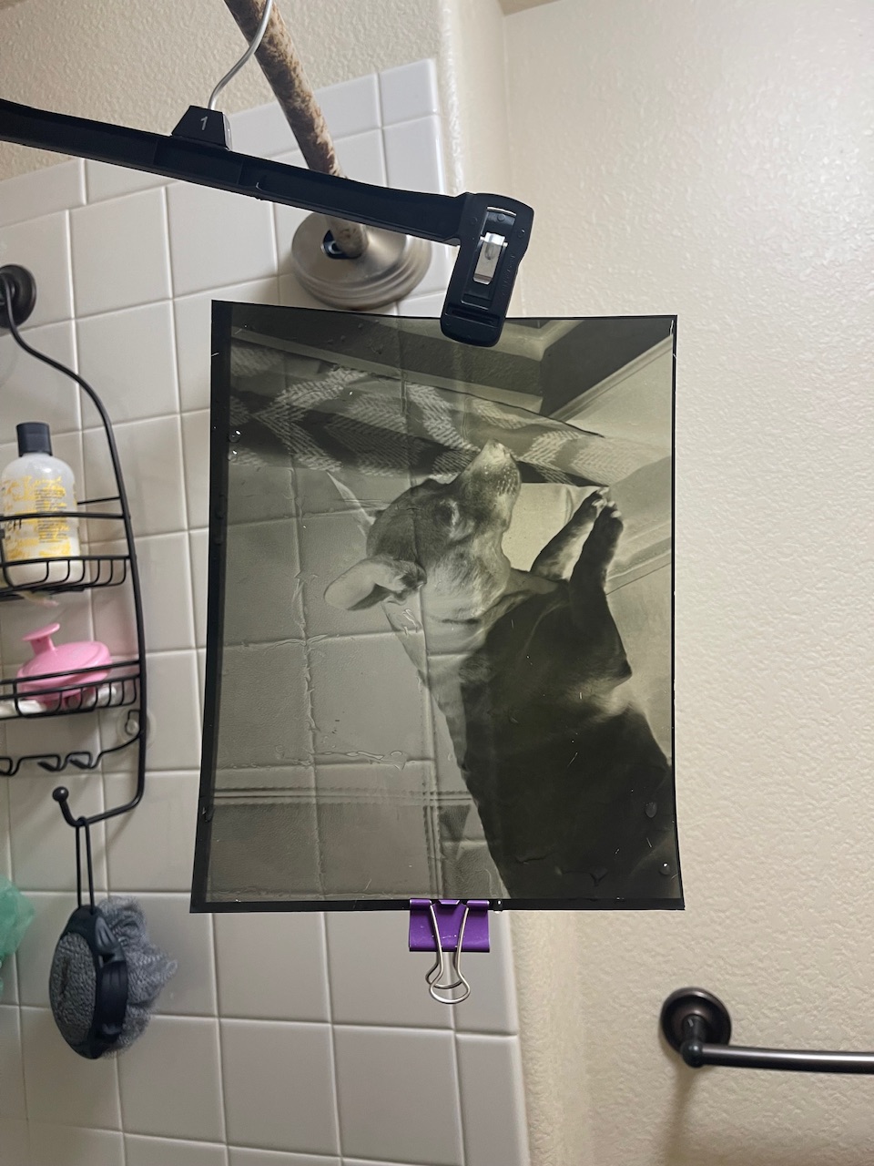 I miss spoke when I said I used it in an enlarger, I should have said I have only used it in an easel exposed with an enlarger. My exposures are pretty long and my development runs about 9 minutes.The film looks sort of brown, both in the shadows and highlights, like sepia. I honestly don’t hate it. I’m gonna try HC-110 A, and if that doesn’t make me happy, I’ll get some D-19.