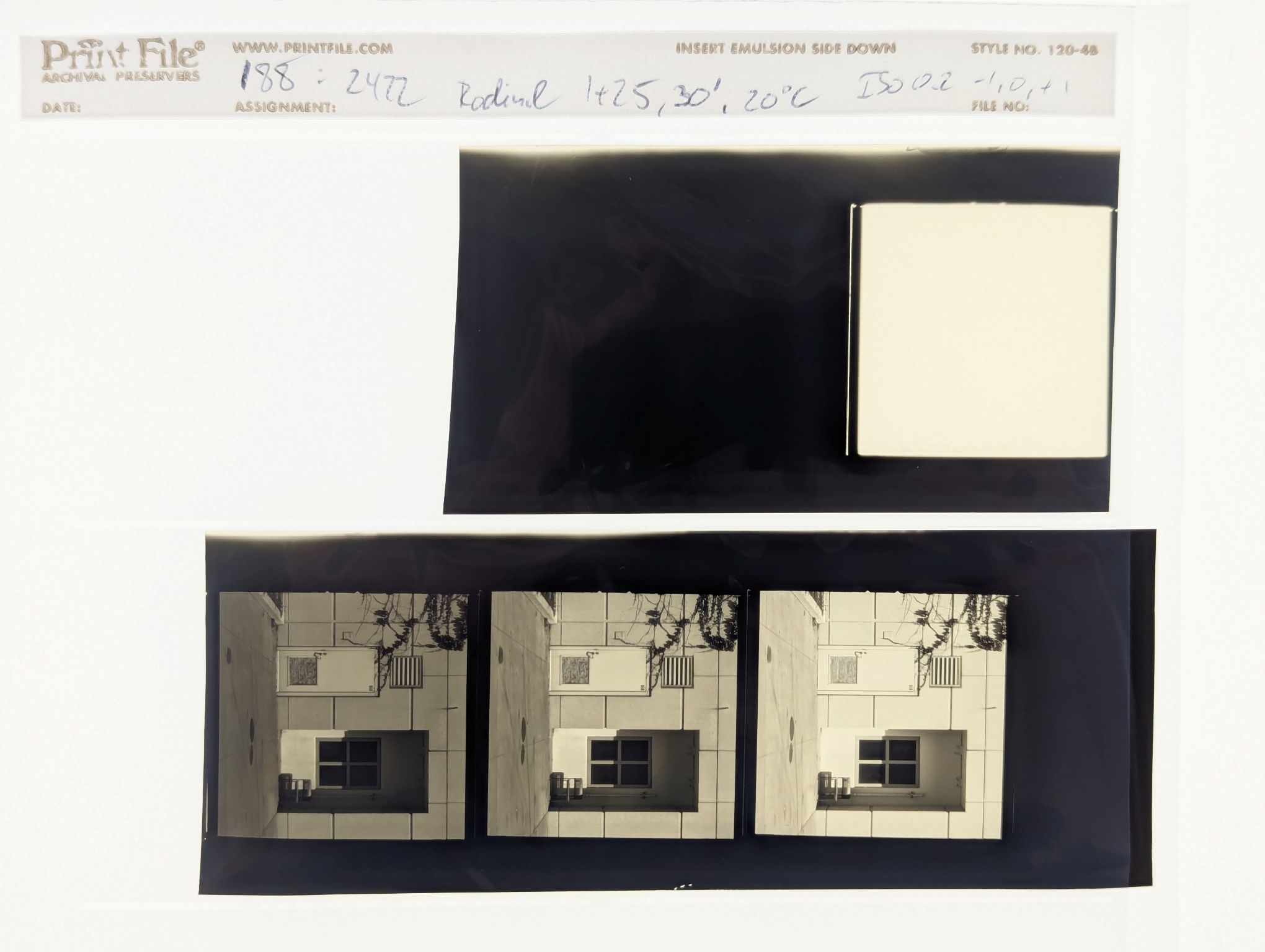 Rodinal + tap water: 12 mL + 900 mL. Rotary, 12 minutes, 20 C