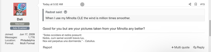 Some people happen to like M3's magnification and think that because they like its magnification then the M3's rangefinder must be "the best". Good luck telling them they are "wrong"... 😉
