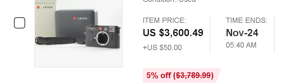 FYI that is a very expensive price for a 40 year old M6. Private sales are in the $2500 range. You can buy a brand spankin new M6 for $600 more, shipped If you live in the US and buy from the UK.