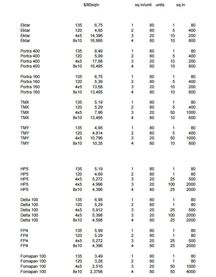 (For the record, 2017 film prices for different formats, second numeric column from left is price per 80sq in)