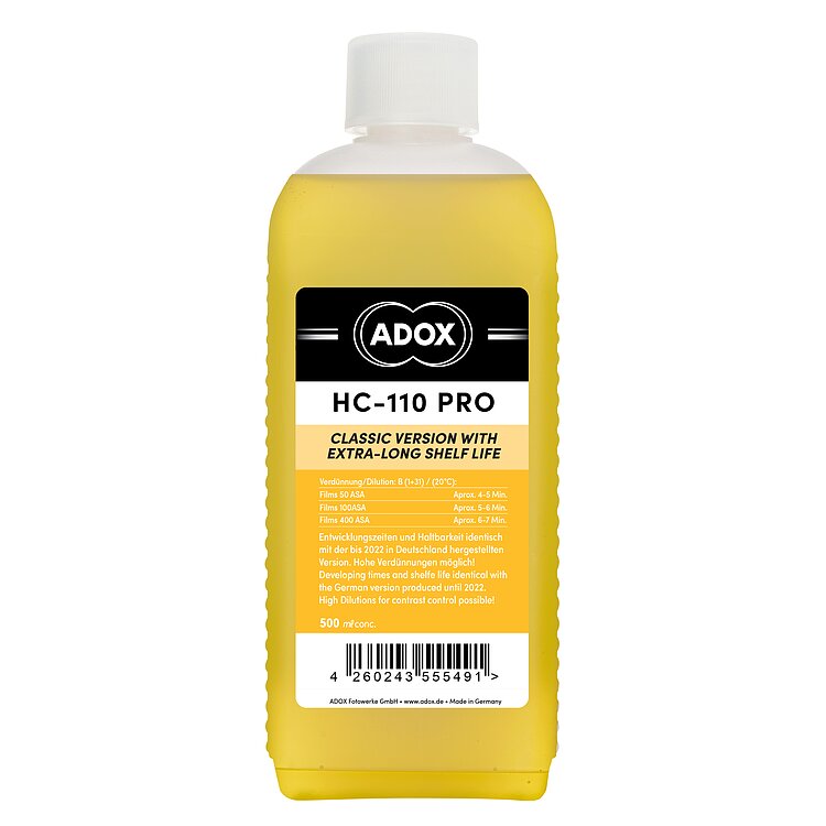 Manufacturing the original HC-110 “syrup” is complex due to its thick consistency, which requires extra time for pumping and filtering. Therefore, the ADOX product is more expensive than the alternatively available thinner variant - as an upside, boasting a basically infinite shelf life.