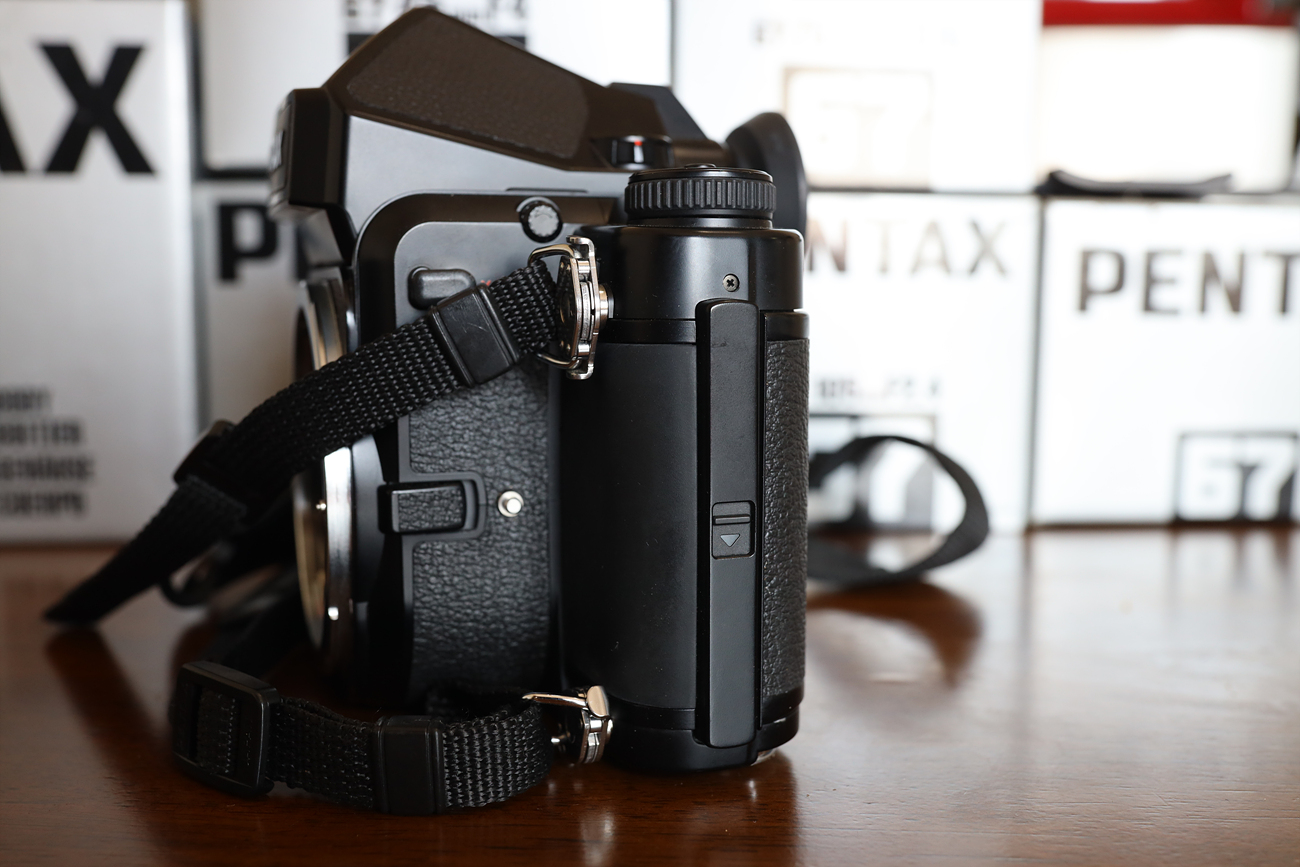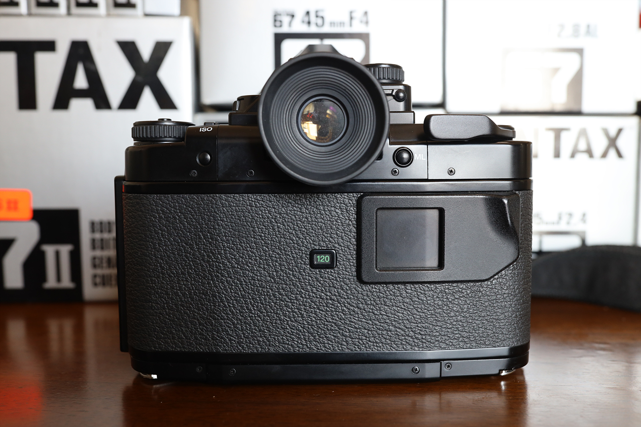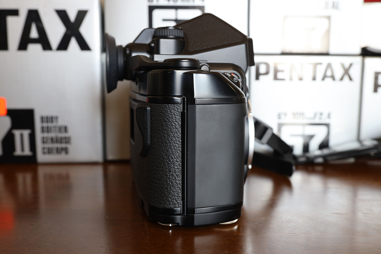 Includes: original boxes for the body and AE finder, top cap for the camera body, bottom cap for the AE finder, original Pentax strap with lugs. I should have the body cap somewhere. Currently have the eyecup installed but still have the original round rubber piece.