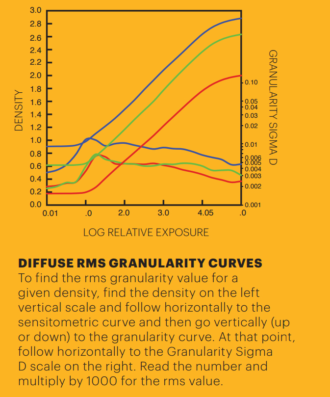 But the grain perception is also related to density, we have Diffuse Granularity graphs depending on exposure and correlating to density: